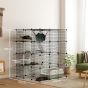 PAWSTER Steel Wire Cat Cage Indoor with Hammock, Ramps, Doors, DIY Cat Enclosure for 1-3 Cats, Black
