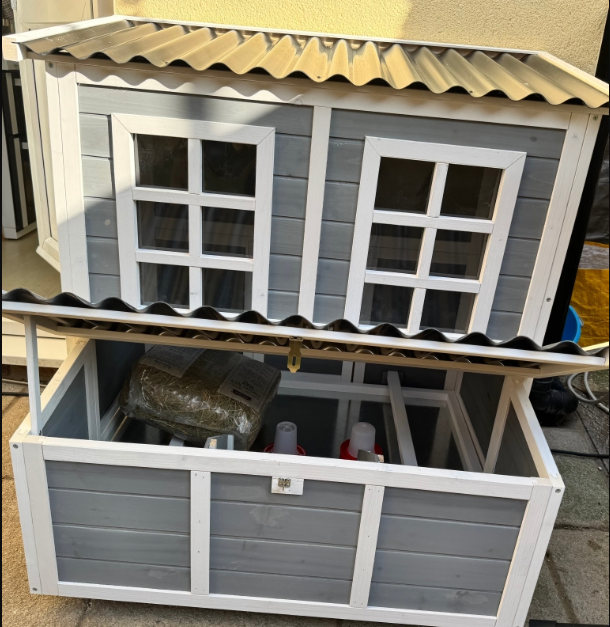 PAWSTER Wooden Chicken Coop with Nesting Box, Slide-Out Tray, Perches, for 4-6 Chickens, 100 x 86 x 100cm