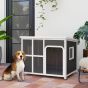 PAWSTER Wooden Dog House Outdoor with Asphalt Openable Top, Removable Floor, Clear Front Panel, Curtain, 103 x 77 x 83cm
