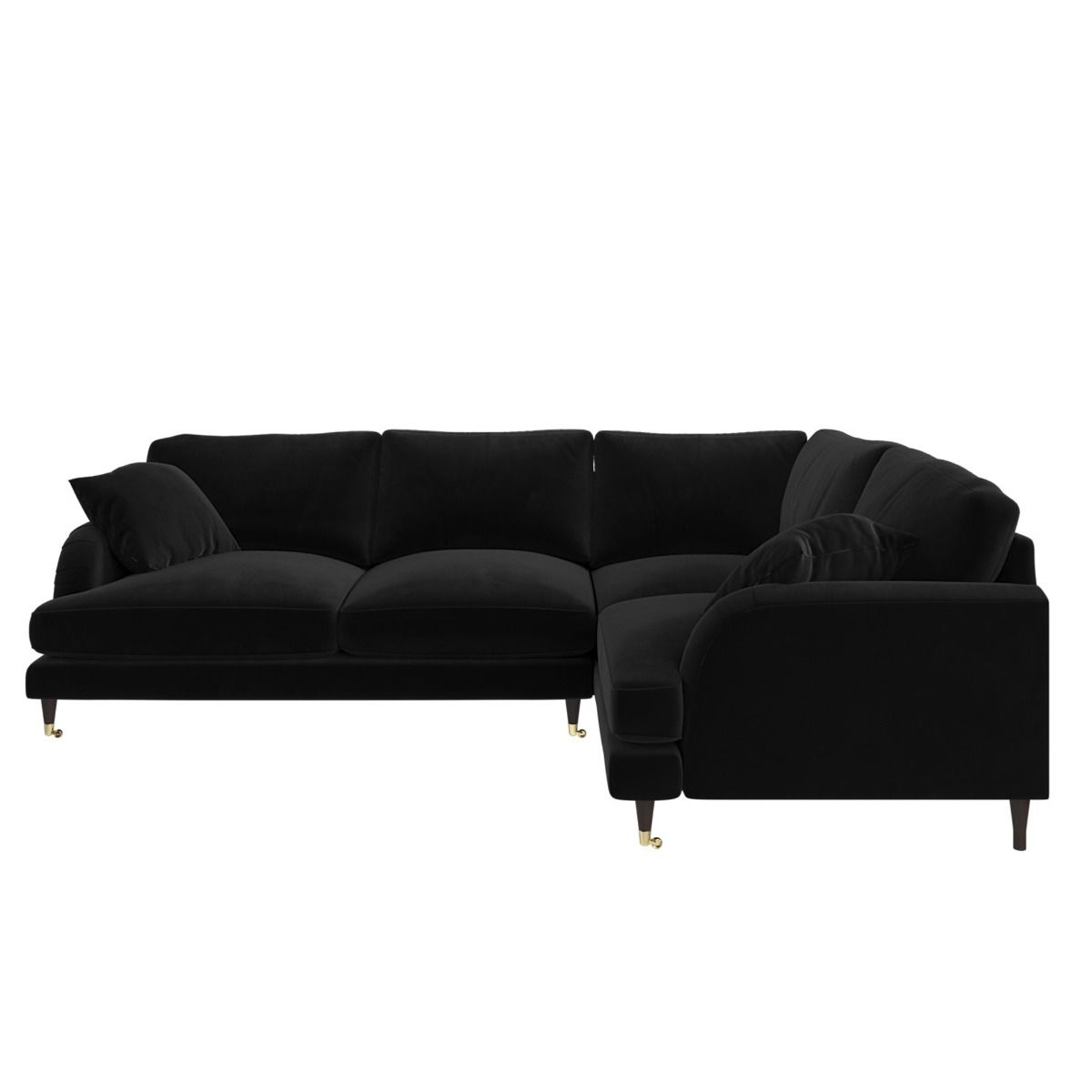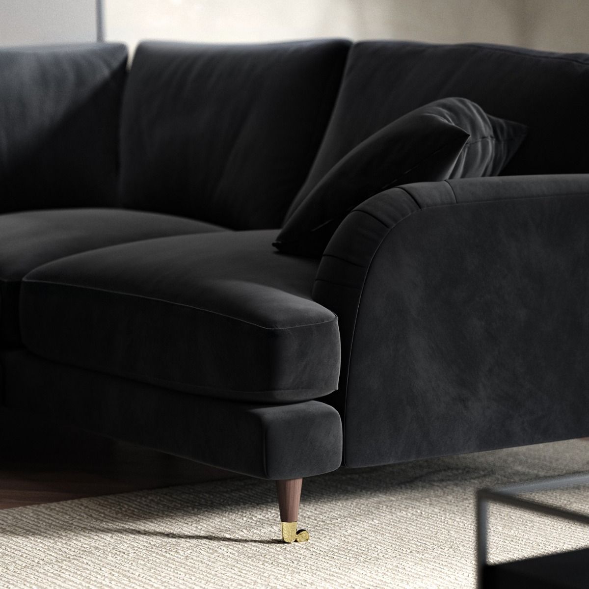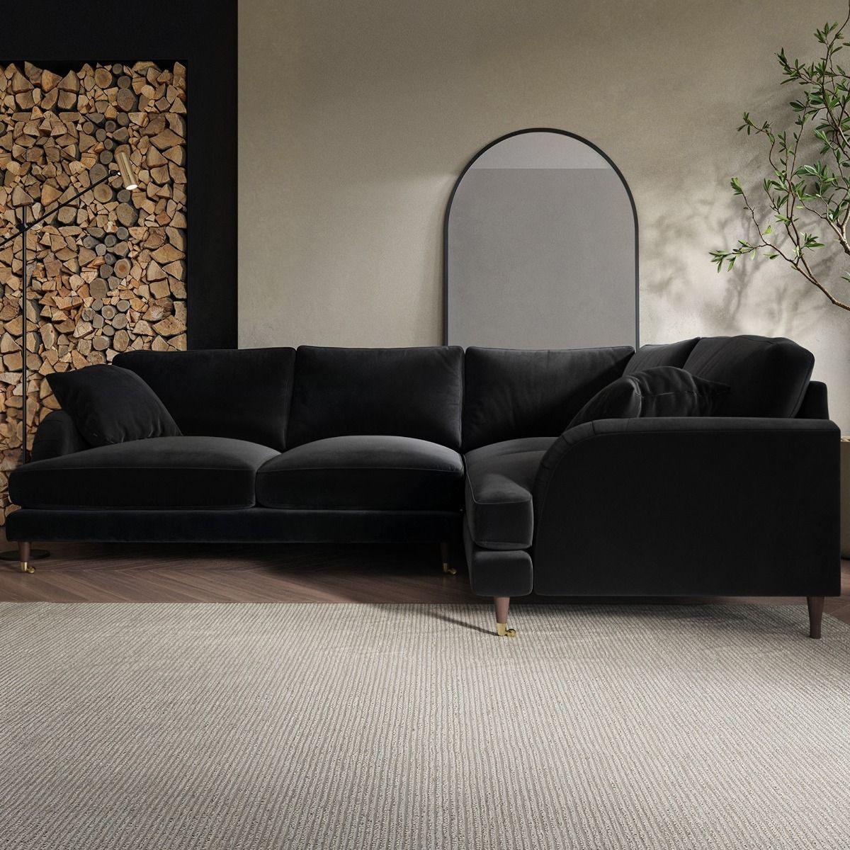 PAYTON Velvet 4 Seater L Shaped Dual Arm Corner Sofa - Black, Right Hand Facing