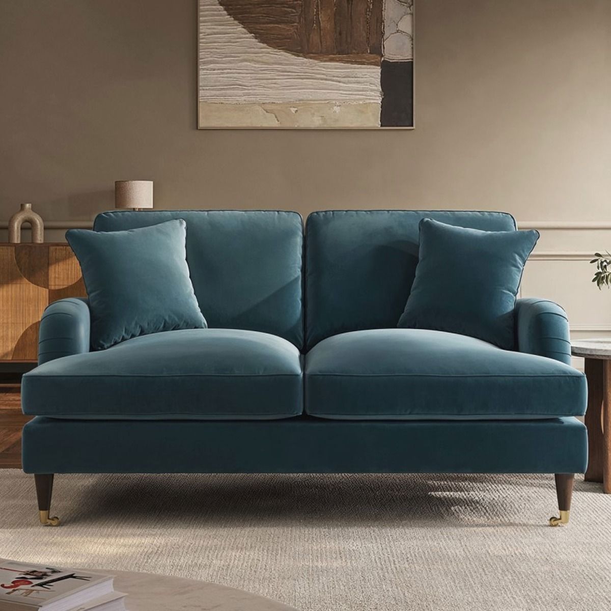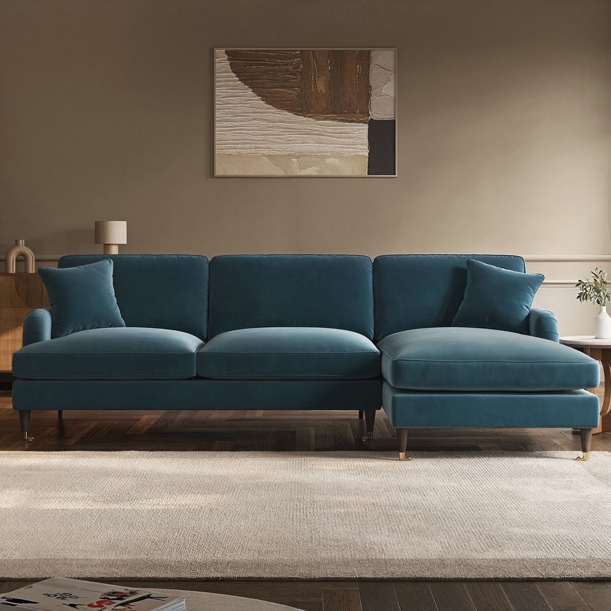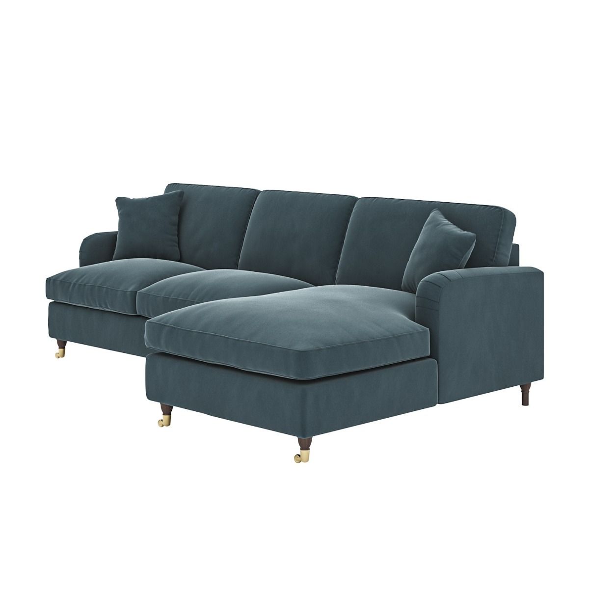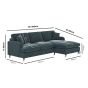 PAYTON Velvet 4 Seater L Shaped Fullback Corner Sofa - Blue, Right Hand Facing