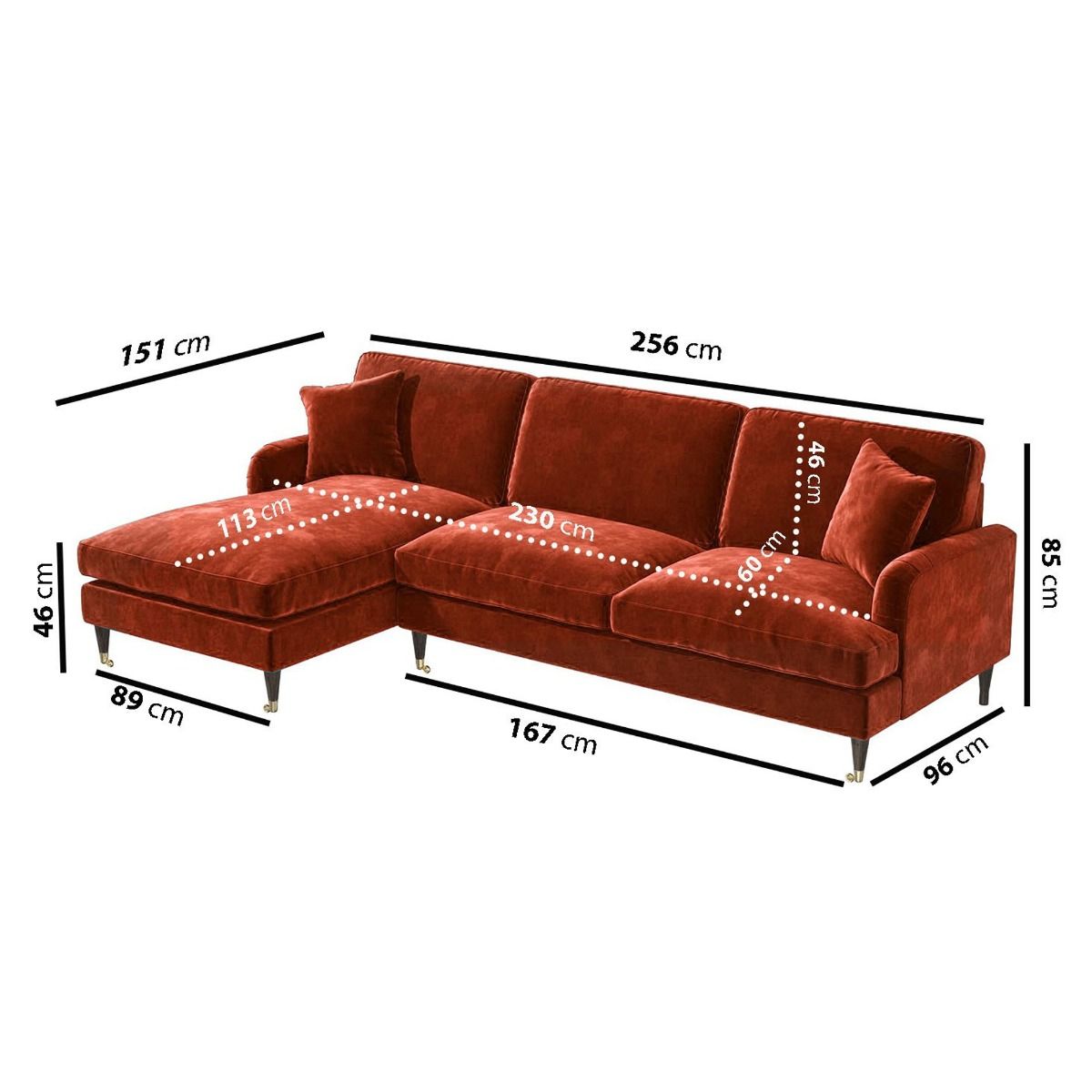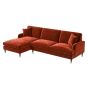 PAYTON Velvet 4 Seater L Shaped Fullback Corner Sofa - Burnt Orange, Left Hand Facing