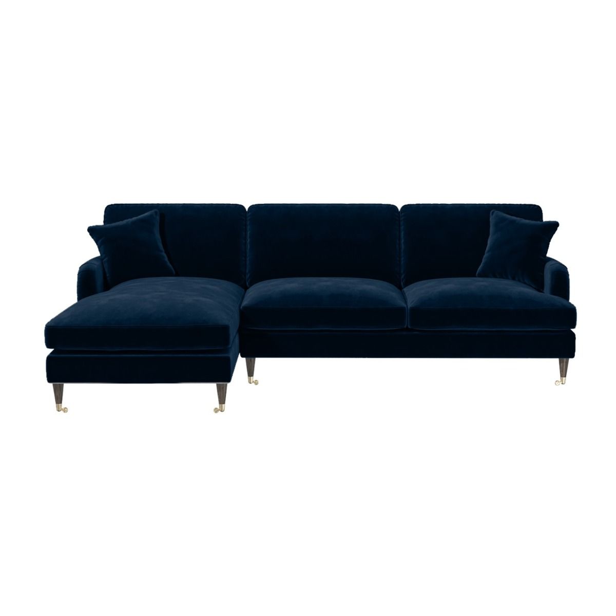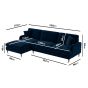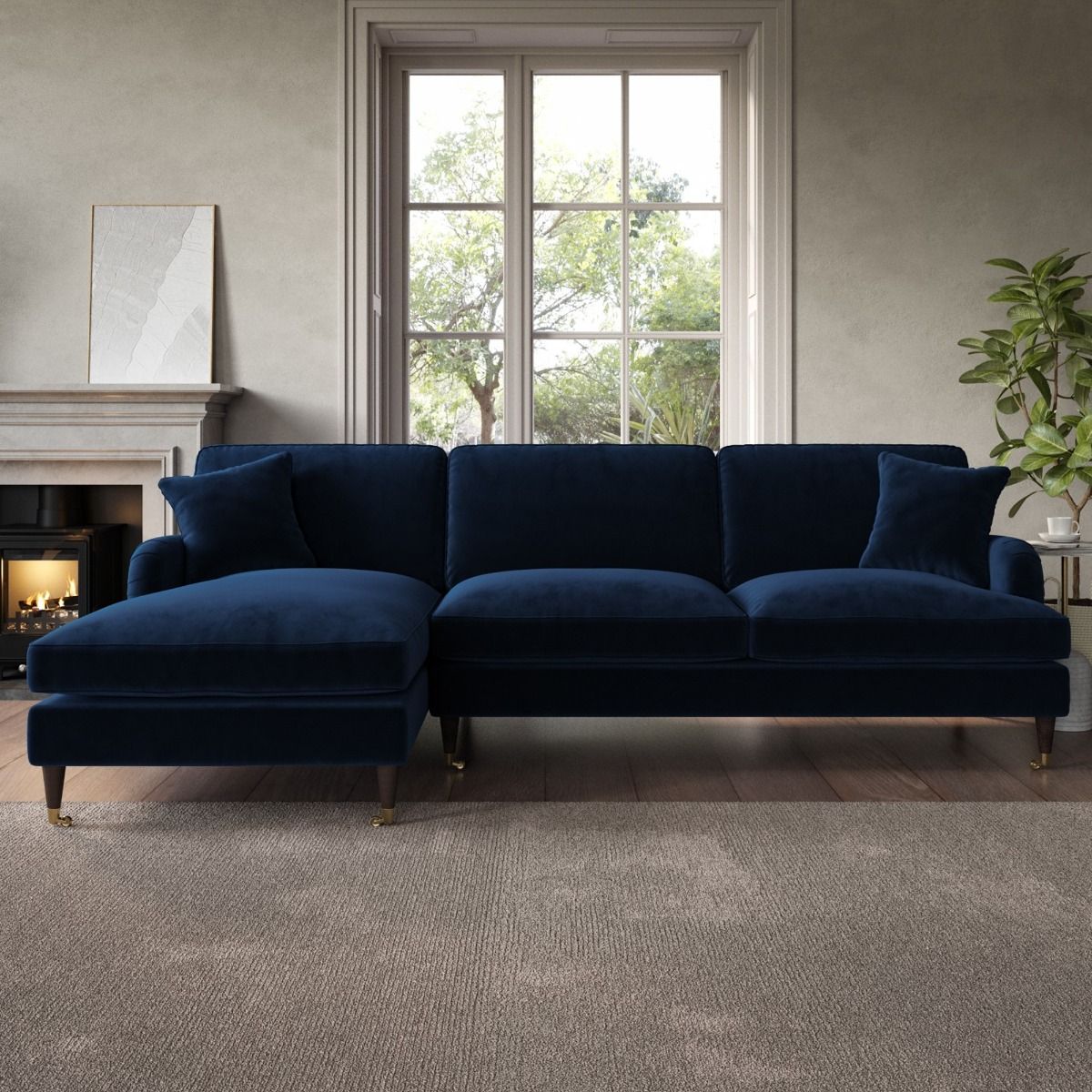 PAYTON Velvet 4 Seater L Shaped Fullback Corner Sofa - Navy Blue, Left Hand Facing