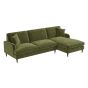 PAYTON Velvet 4 Seater L Shaped Fullback Corner Sofa - Olive Green, Right Hand Facing