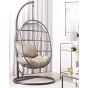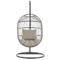 A trendy hanging chair is a perfect addition to your living room or a terrace. It serves as an interesting accent piece, and provides an ideal resting and relaxing place. Chain suspension enables you to set yourself into a gentle rocking motion, helping you unwind after a busy day. Comprising a seat made with strong rope, the chair will be long-lasting, retaining its great looks for the whole time. Details: Color: Black, Grey. Main material: PE Rattan. Additional material: Polyester, Steel. Material Composition: 100% Polyester Weight: 34.5 Assembly: Partial Assembly Required Weight Capacity: 140 Cushions Dimensions: 75x58 Padding Thickness: 15 Seat Height: 35