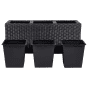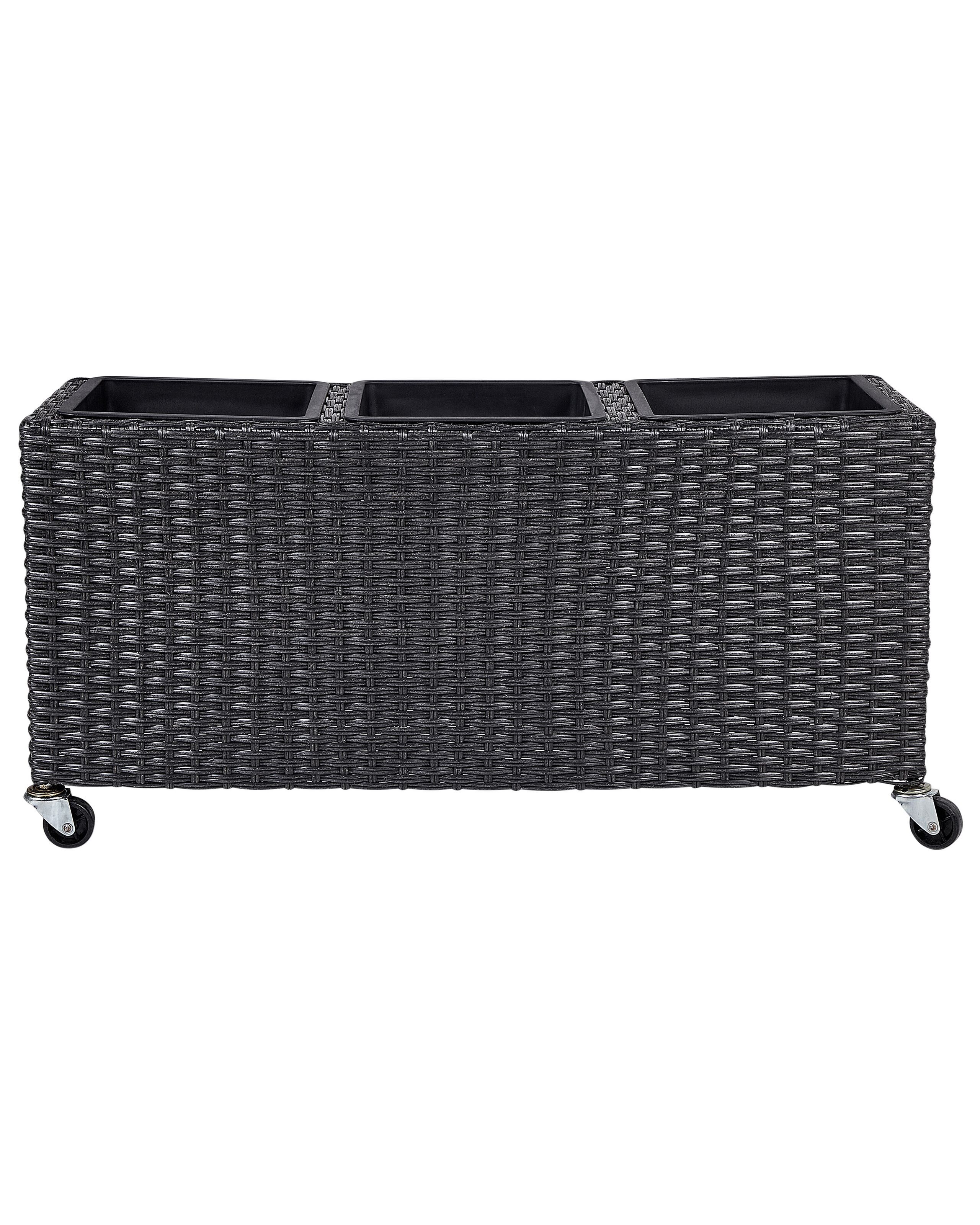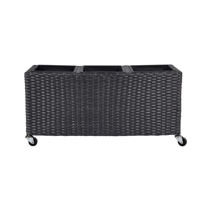 Enhance your indoor or outdoor space with a soothing touch of nature with this functional plant pot. Designed with wheels for effortless mobility, it enables you to move your flowers indoors in case of bad weather. The planter includes three plastic inserts for easy plant management, making it a stylish way to showcase your blooms at home or on your balcony. Details: Color: Black. Main material: PE Rattan. Additional material: Steel, Synthetic Material. Weight: 4 Assembly: Does Not Require Assembly