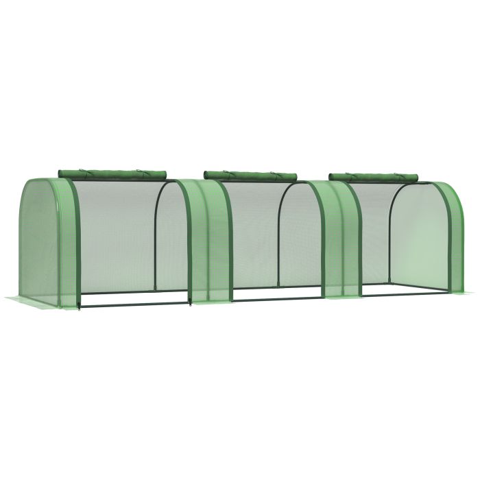 Grow plants, vegetables, fruit and flowers safely all year round with this long tunnel greenhouse from. With a powder coated steel frame for strength and durability, it features a durable cover, helping to protect plants from cold, whilst providing plenty of sunlight for them to nourish and grow. The cover also features zipped doors, providing you easy access and ventilation throughout. Lightweight enough to be moved around, this greenhouse is perfect for gardens, patios, balconies and allotments.