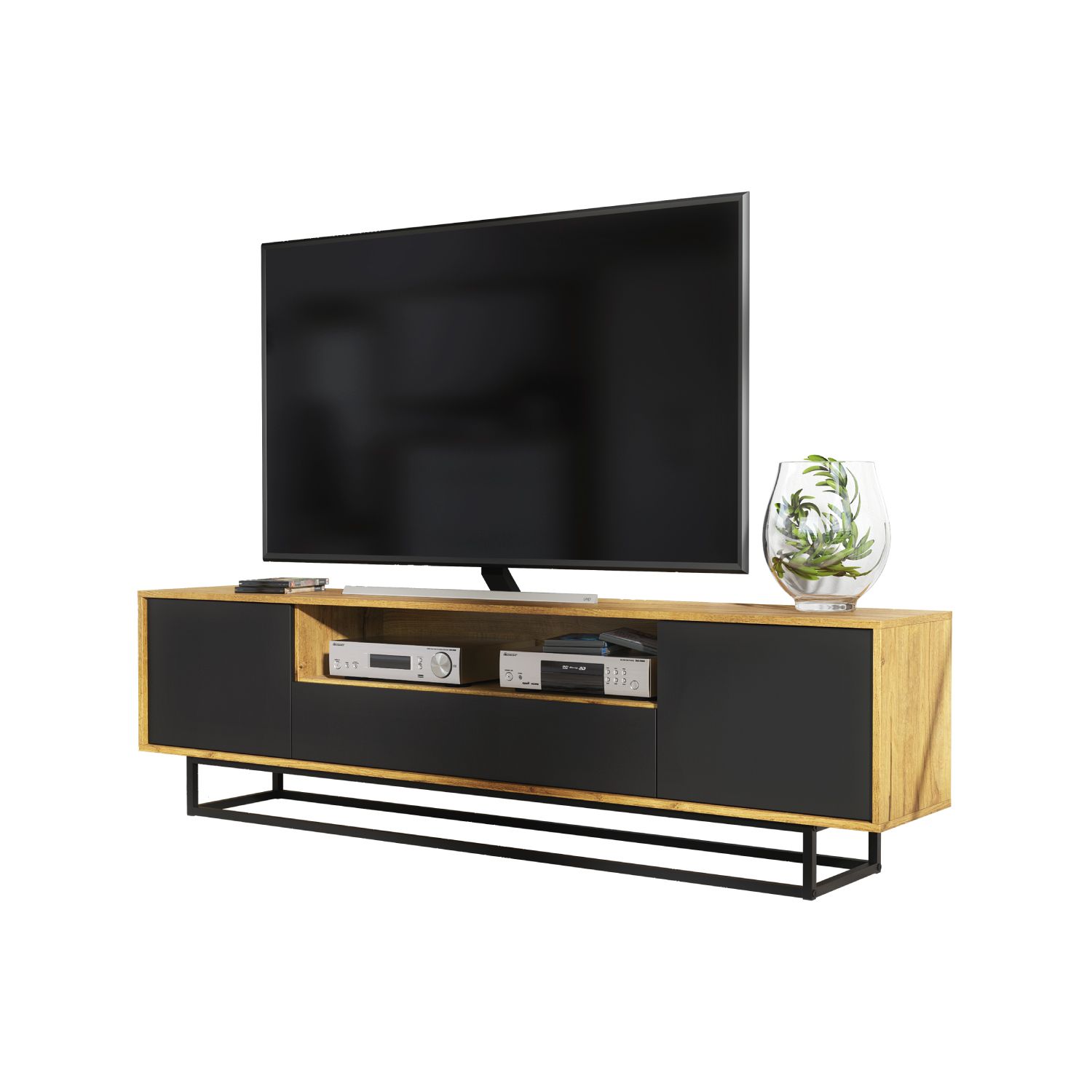 The PEARL Loft TV Unit combines industrial charm with contemporary design, making it the perfect centrepiece for your living room. Measuring 200cm (W) x 50cm (H) x 35cm (D), this unit is crafted from durable 16mm MDF and chipboard, ensuring lasting style and functionality. Bold black metal legs complement its clean lines, creating a loft-inspired aesthetic that suits any modern interior. Featuring two push-to-open doors on either side, it offers ample concealed storage for keeping your space tidy. A spacious drawer in the centre provides additional room for essentials such as remotes or gaming accessories, while the open compartment above is ideal for showcasing media devices or decorative pieces. Easy cable access at the back ensures a neat and organised entertainment setup. Available in warm, earthy finishes that bring character to your space, the PEARL Loft TV Unit is a standout addition to any home. Available in Dark Oak, Dark Oak & Black Matt Doors, and Rustic & Black Matt Doors.