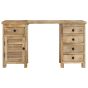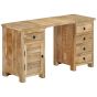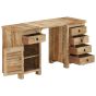 This vintage-style wooden pedestal desk is meant to be a timeless addition to your home and office. The desk is made of solid mango wood that is stable, durable and beautiful, and the craftsmanship adds to the desk's spectacular retro style. Solid mango wood has the strength to bear the weight and stands the wear and tear of time. Every step of the process is carried out with exceptional care, be it polishing, painting or lacquering. The desk has 5 drawers and 1 cabinet, which provide ample space for storing small items such as keys, notepads, and other knick-knacks. The pedestal design is attractive as well as multifunctional. Also, thanks to the removable tabletop, the desk is easily converted into 2 separate side cabinets. Important note: The wood grains and colours may vary from piece to piece, making each of our desks unique. The delivery is random as well.