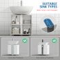 - SPACE SAVING: Fits underneath your bathroom sink, bringing in an extra place for bathroom storage. 10W x 17D cm 'U' shaped cut-out for the sink pipe. We recommend you measure the sink before purchasing.