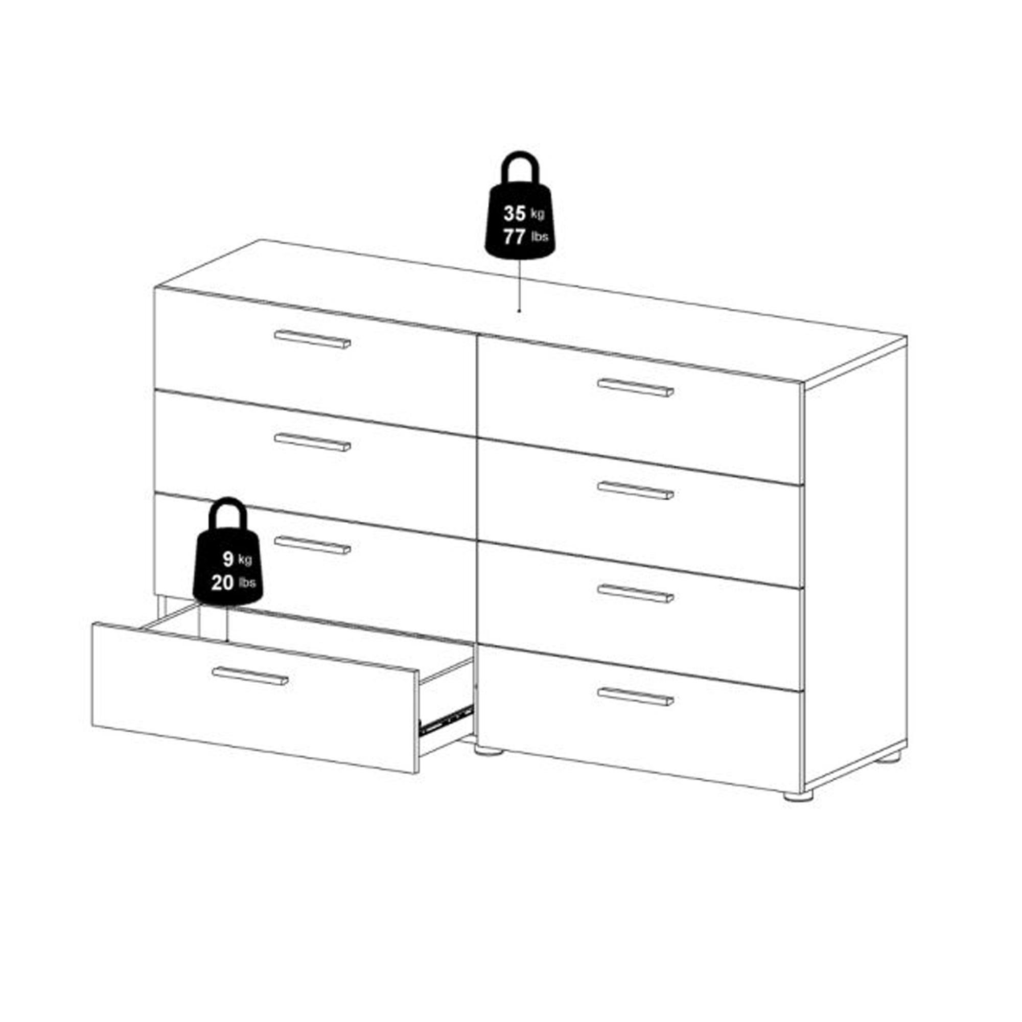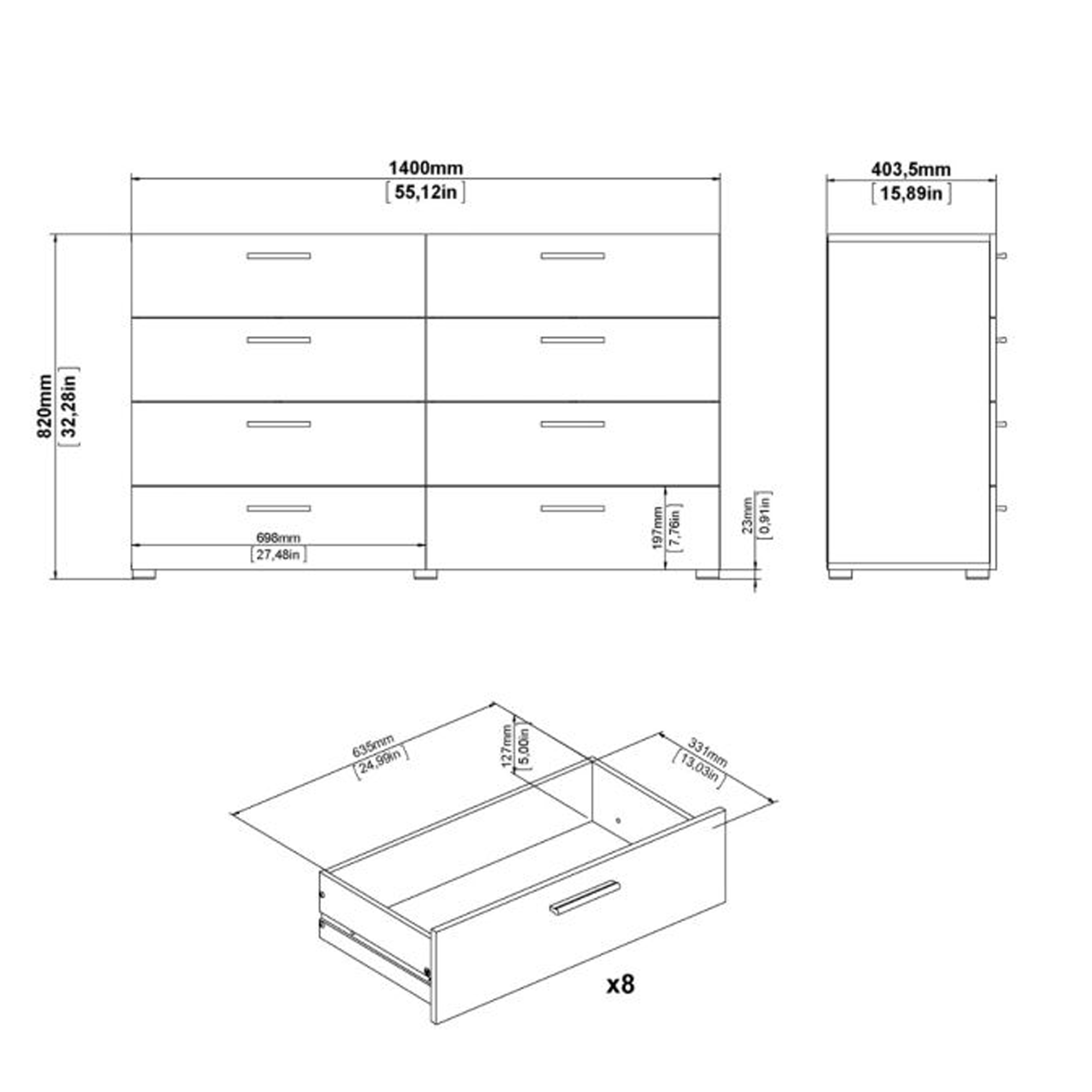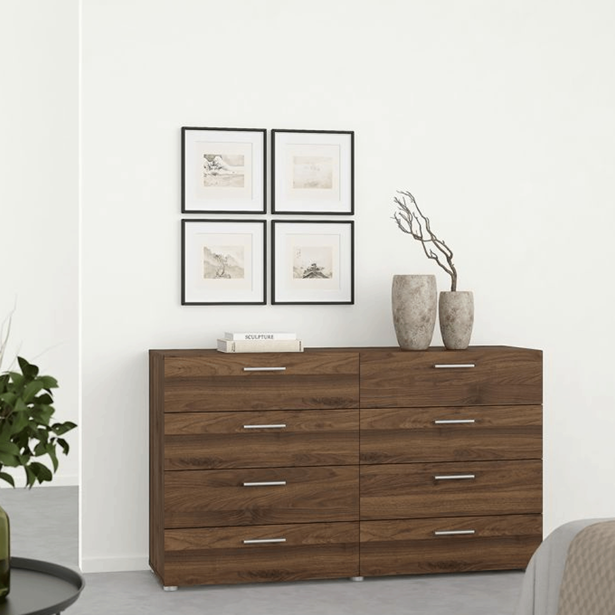 PEMBROKE Dark Oak Finish Chest of Drawers - Extra Large-sized, 8 Drawers, Double