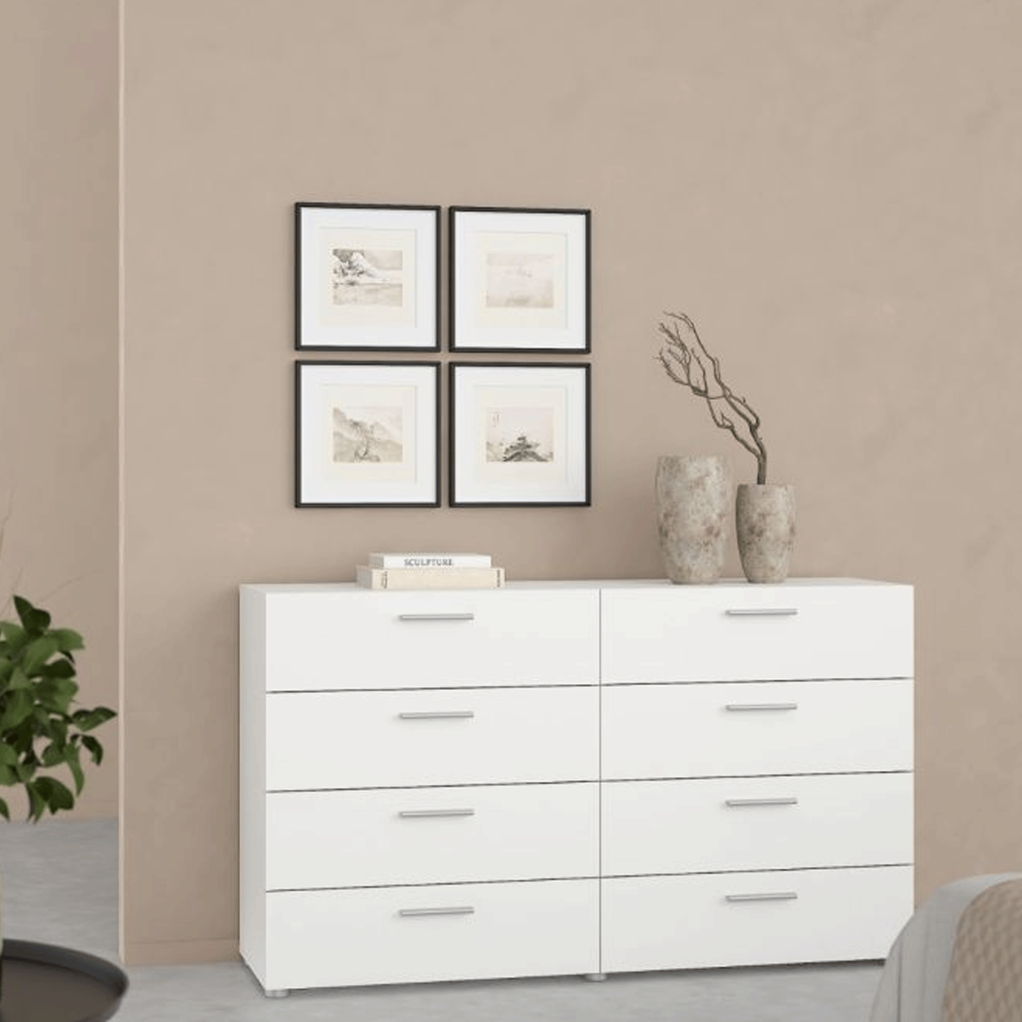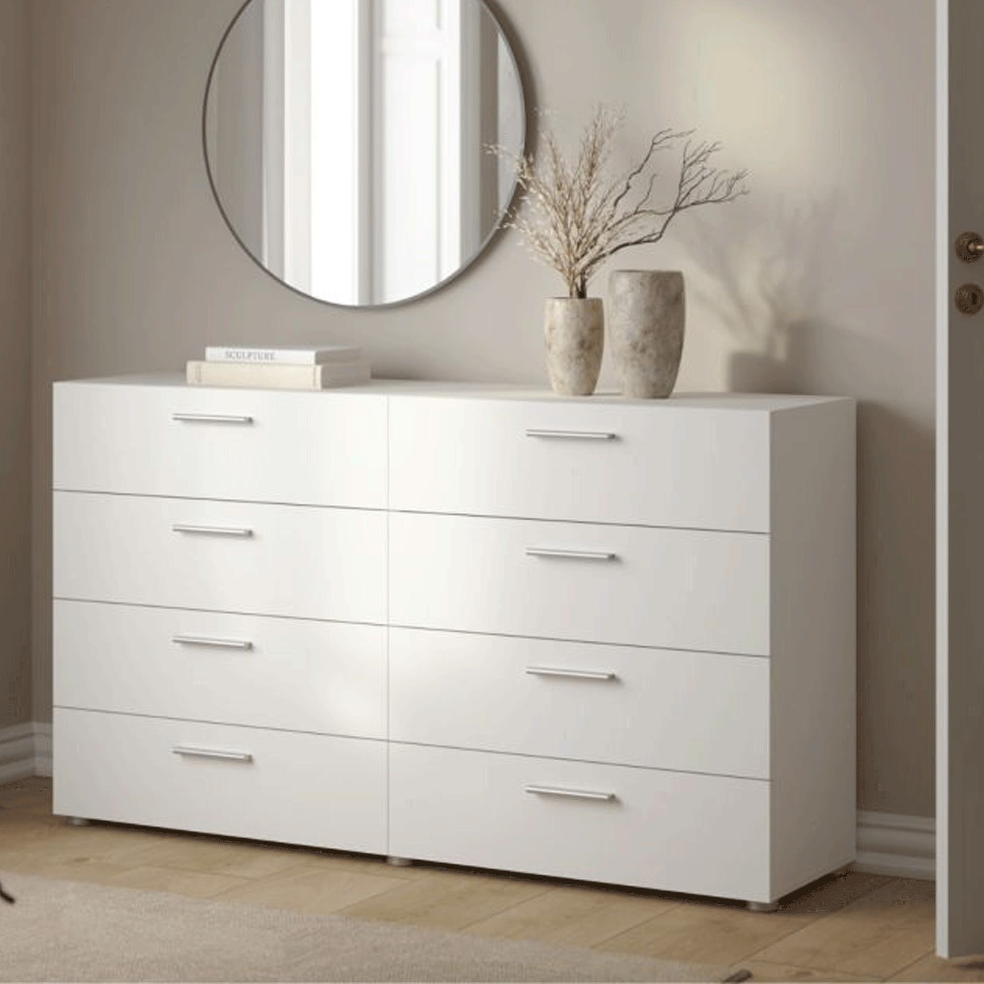 PEMBROKE White Chest of Drawers - Extra Large-sized, 8 Drawers, Double