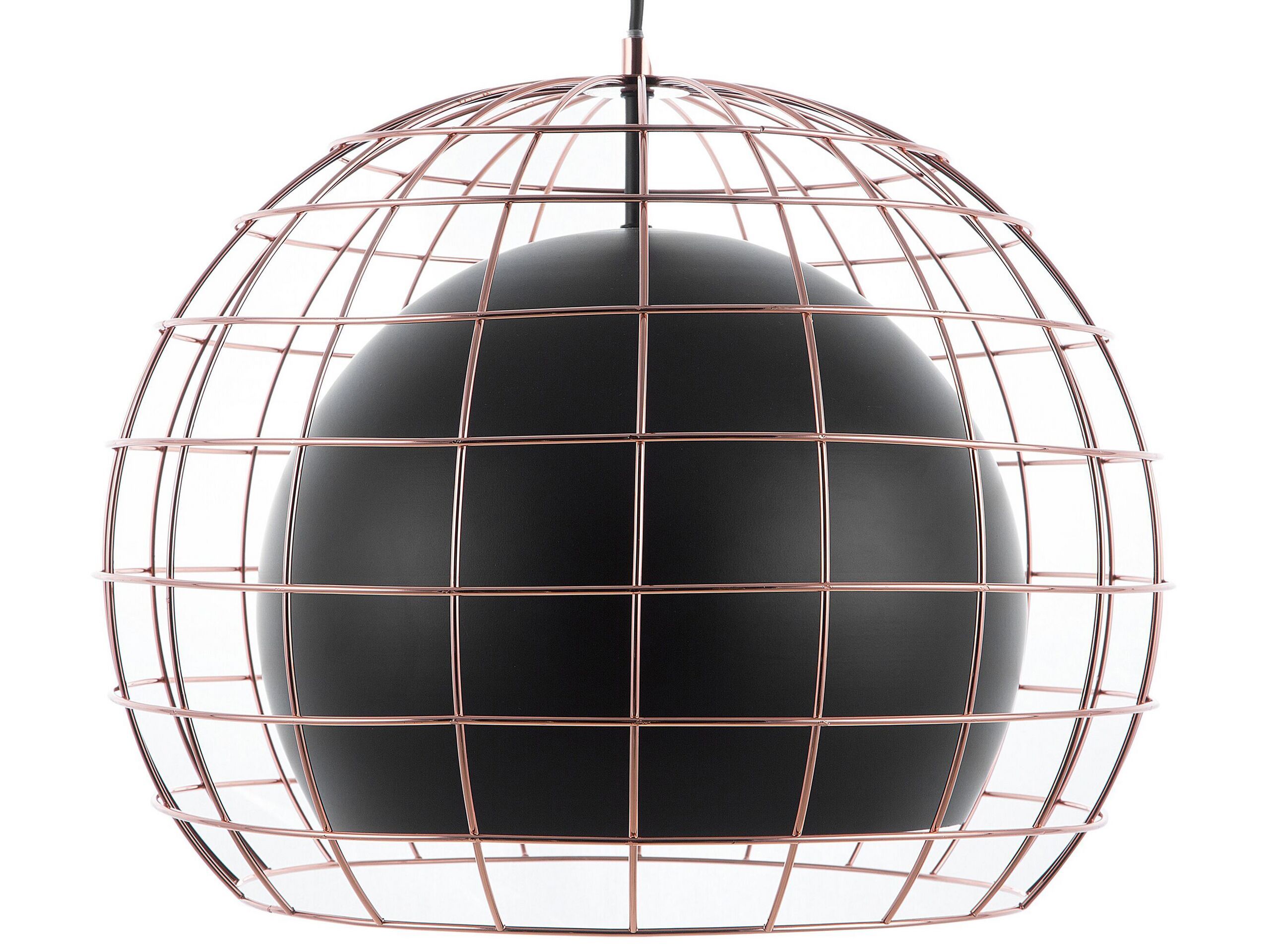 This matt finish black lampshade encapsulated in a round black coloured cage will definitely inject an industrial style to any interior. Made of a robust metal, the ambient pendant is a great overhead feature that will upgrade the looks of every setting. Hang it in the living room, kitchen or hallway to make a true statement. Details: Color: Black, Brass. Main material: Metal. Additional material: PVC. Weight: 3 Assembly: Requires Installation