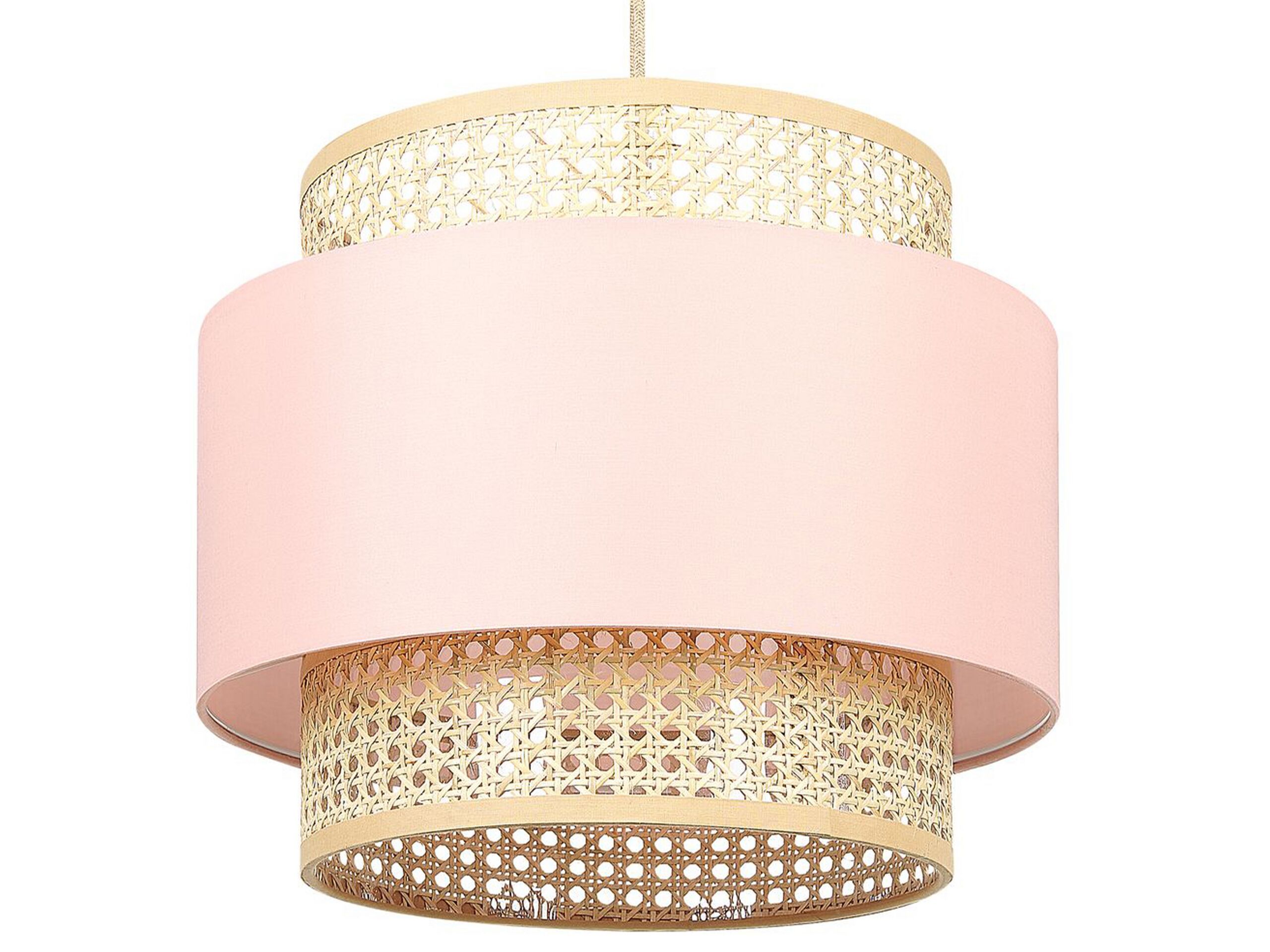 Spruce up the look of your interior with a truly decorative pendant lamp. The product comes with a double shade, made from rattan wicker and semi-transparent fabric in a classic colour. The cord length can be adjusted according to your needs. A nice ambient light that this piece guarantees will create a pleasant atmosphere in the entire room. Details: Color: Natural, Pink. Main material: Polyester. Additional material: Synthetic Material. Material Composition: 80% Polyester, 20% Cotton Weight: 1.2 Assembly: Requires Installation Wood type: Calamus Wood Origin: China