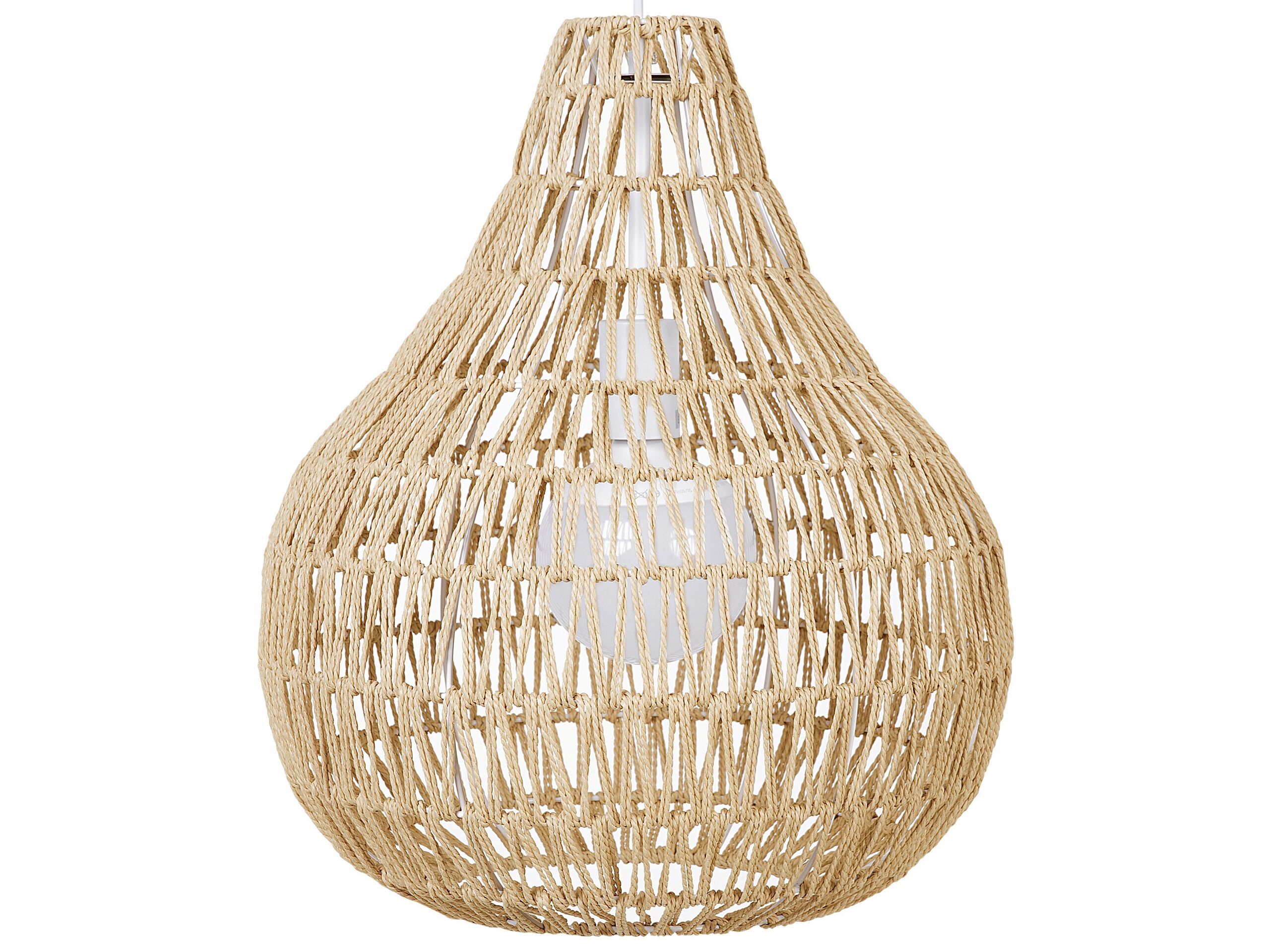 A natural, organic-look thread combined with functionality is what makes this lamp an excellent choice for any interior to add a fresh, trendy, boho vibe. From a dining setting to a living room conversation spot, it casts romantic, ambient light over its surroundings, making them inviting and cosy. Details: Color: Beige. Main material: Paper Rope. Additional material: Iron, PVC. Weight: 2 Assembly: Requires Installation