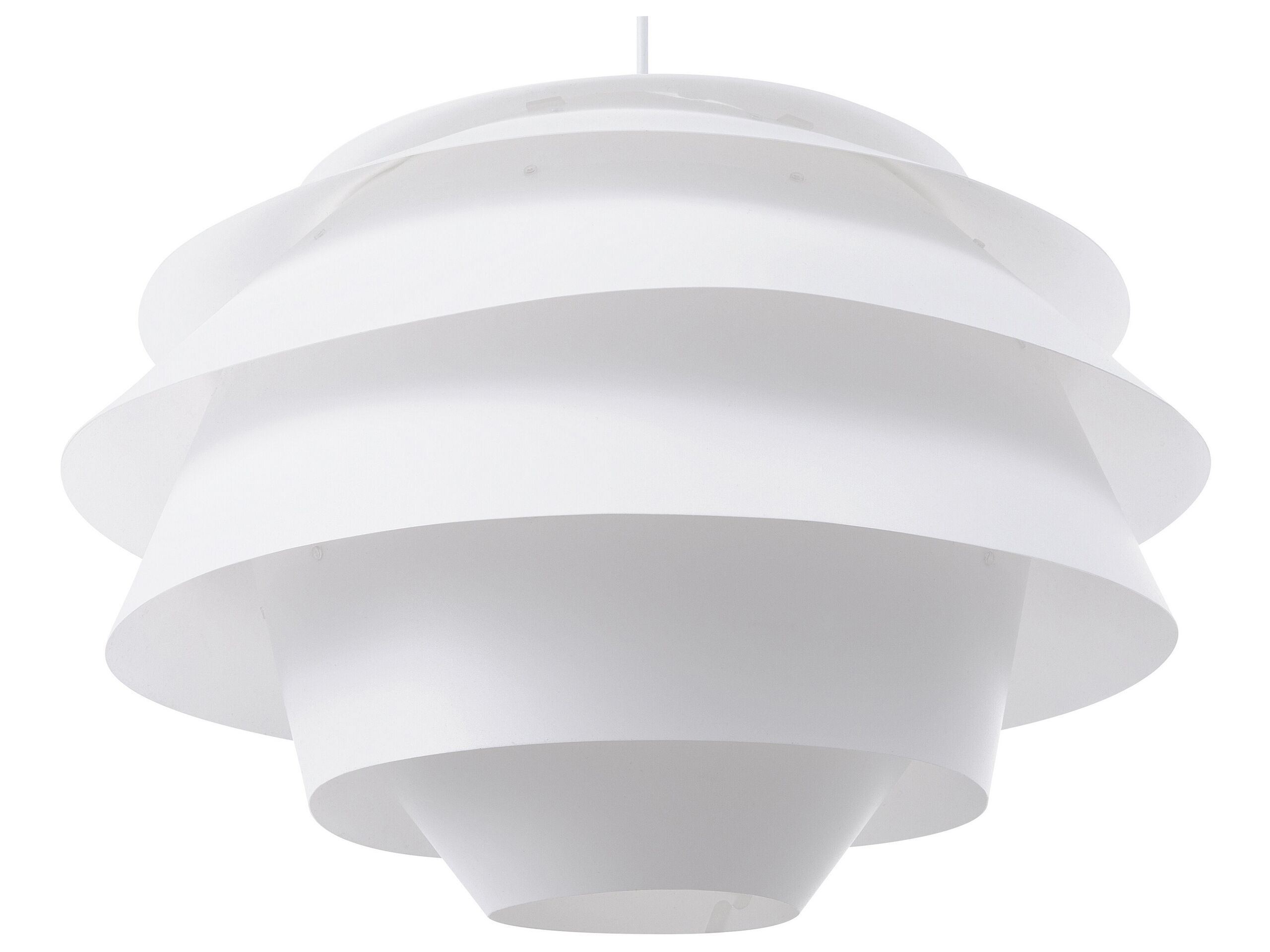 Modern ambient pendant lamp with a mid-century touch design, and a suitable accent above a sofa nook or a dining table. The tiered-shape lampshade casts a soft light over the whole room. With its sleek silhouette, the fixture is a matching accent for a modern, Scandinavian or vintage interior setting. Details: Color: White. Main material: Synthetic Material. Weight: 2 Assembly: Requires Installation