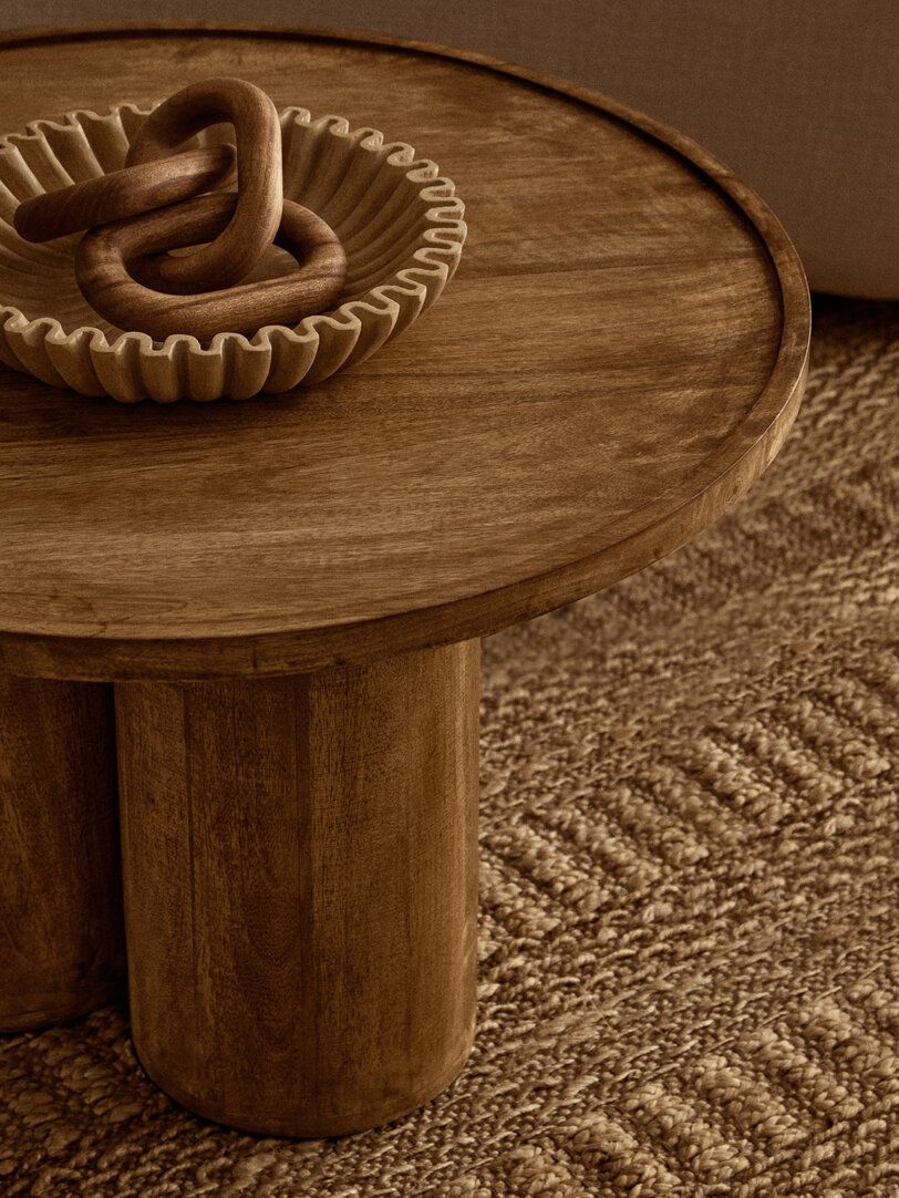 Embrace timeless elegance with the PENWYTHA natural mango wood coffee table featuring an elegant double column base.