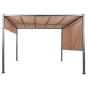 Spend time with your family and friends outside even during hot summer days, and provide yourself with an awning over your garden lounging or dining set. The robust pergola is made of durable, powder-coated steel that guarantees stable construction and a UV-resistant sliding canopy that can be moved from one side to another. What is more, if you will switch on the solar panel and wait until dusk comes, the LED lights will automatically illuminate the space. Details: Color: Brown, Black. Main material: Steel. Material Composition: 100% Polyester Weight: 42 Assembly: Full Assembly Required