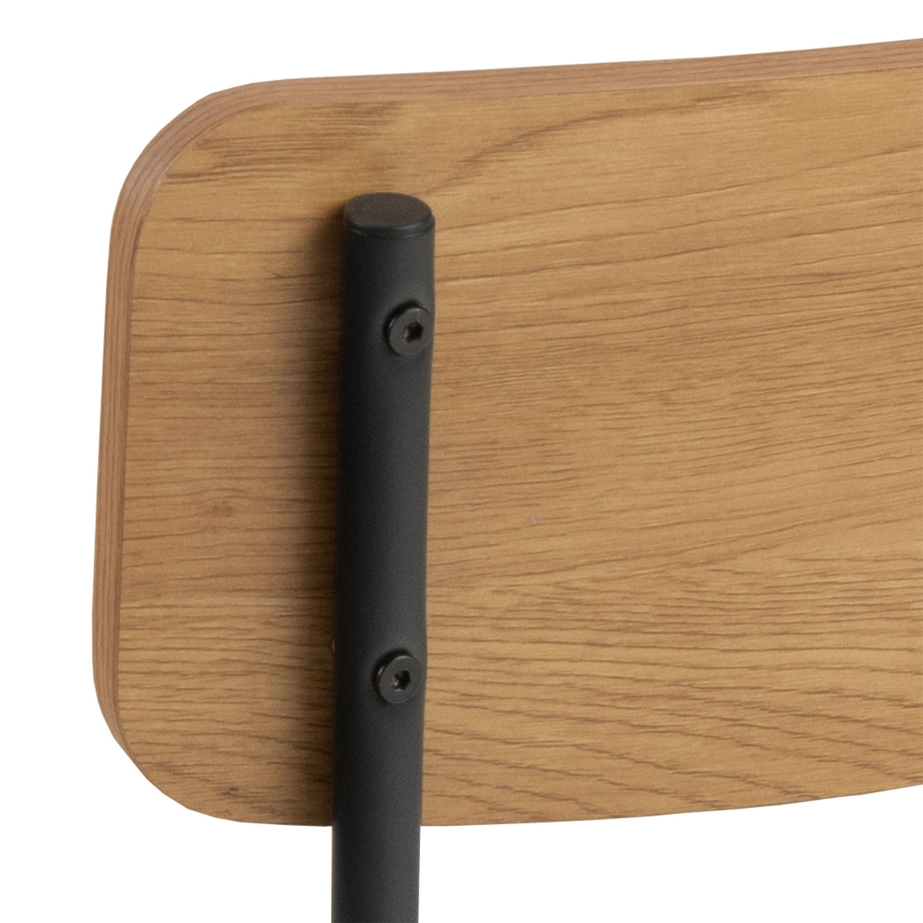 This set of 4 dining chairs offers a blend of rugged charm and modern design. Crafted with a matt wild oak rough melamine seat and supported by a base of matt black rough powder-coated steel, it exudes both durability and style. Available in a set of four, these chairs are perfect for completing your dining space with contemporary flair.