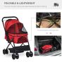 Pet Stroller Dog Travel Pushchair Foldable Jogger with Reversible Handle EVA Wheel Brake Basket Adjustable Canopy Safety Leash Red