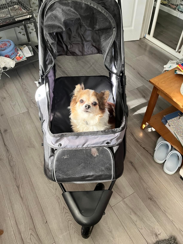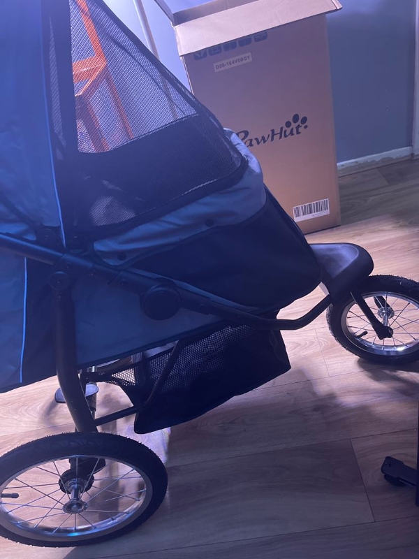 Pet Stroller Jogger for Medium Small Dogs, Foldable Cat Pram Dog Pushchair with Adjustable Canopy, 3 Big Wheels, Grey