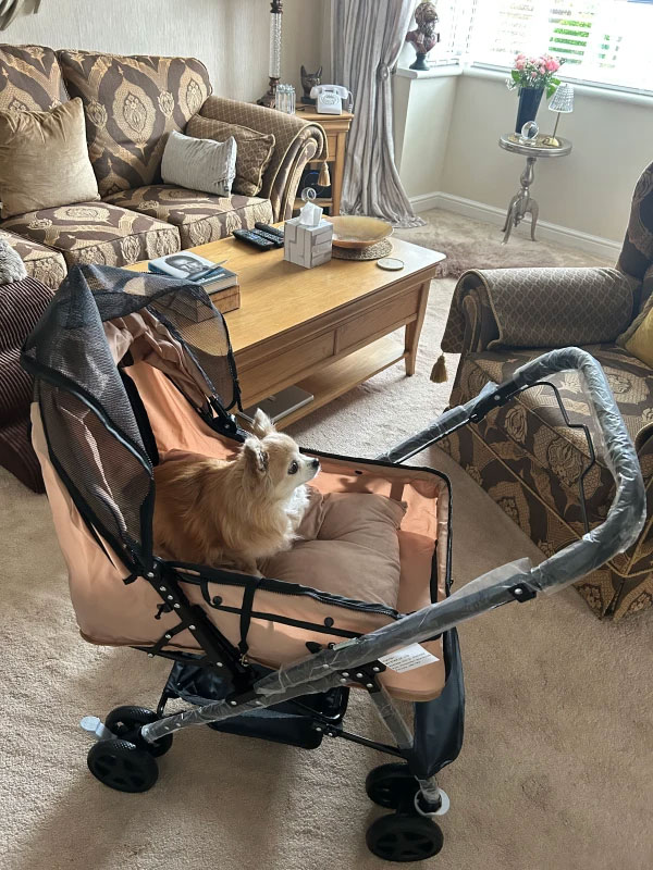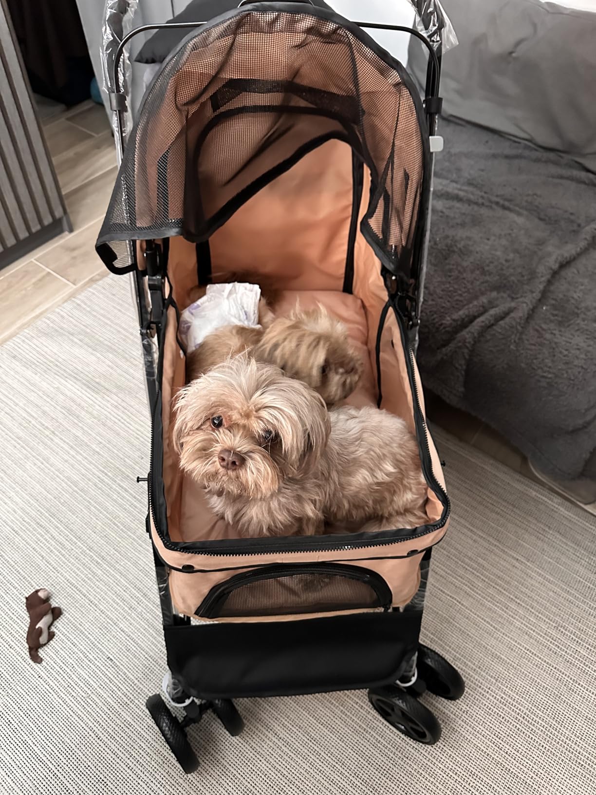 Pet Stroller Pushchair Foldable Travel Dog Cat Carriage w/ Reversible Handle Brake Basket
