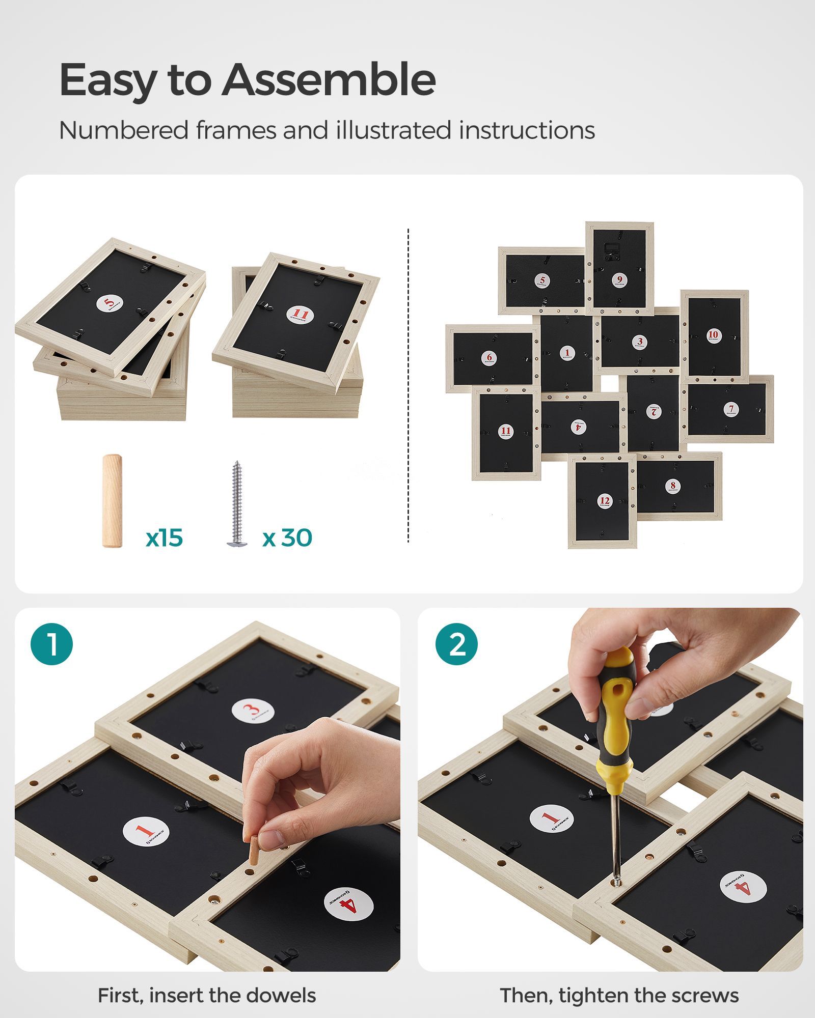 Introducing our Picture Frame Collage designed to showcase 12 of your favorite photos. Crafted with high-quality materials, this collage frame offers a stylish way to display cherished memories. Its versatile design allows for both horizontal and vertical photos, while the sleek frame complements any decor. Perfect for adding a personal touch to your home or office. Elevate your photo display with this elegant collage frame.
