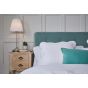 The Pierre bed is a beautiful minimalistic styled bed frame, upholstered in a soft aqua velvet fabric with button detailing on the headboard and sturdy wooden legs. Available in Double or King Sizes. Arrives flat packed for self assembly.