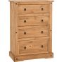 CLACTON II Pine Finish Chest of Drawers - Large-sized, 4 Drawers