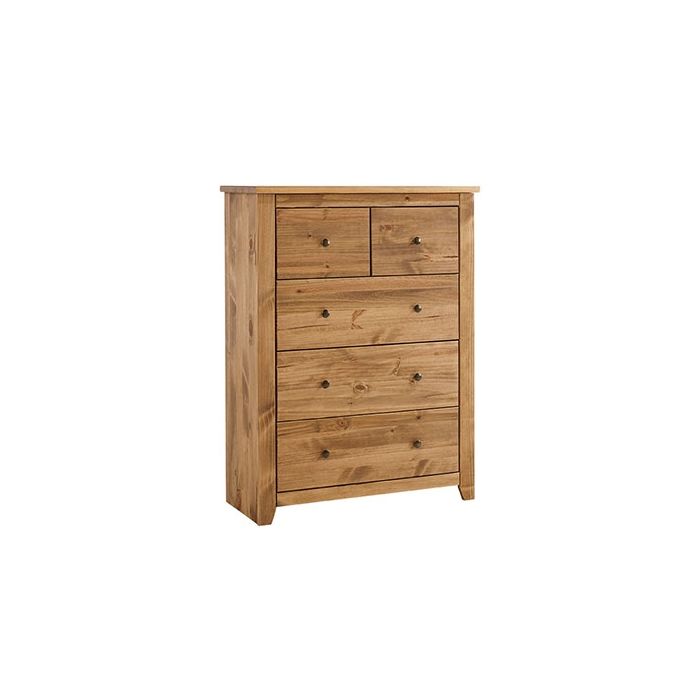 HARLAN Pine Finish Chest of Drawers - Medium-sized, 5 Drawers