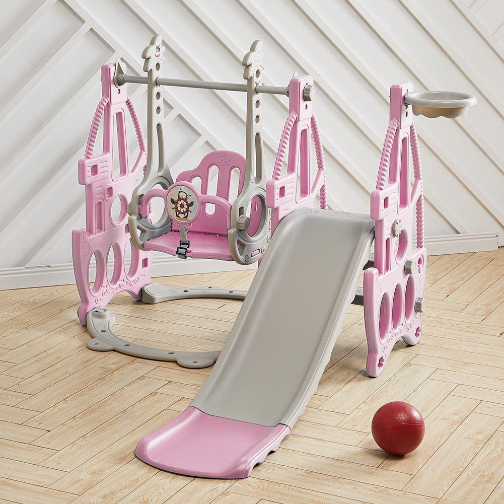 Pink 153cm W 3 In 1 Kids Swing And Slide Set Toddler Climber Playset