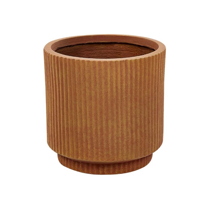 Elevate your green space with this plant pot – a choice that blooms with perfection. Made from fibre clay, it is long-lasting and durable. Its sleek design features vertical ribs that add a touch of elegance, while its UV, water, weather, and stain-resistant properties ensure enduring beauty. Complete with a drainage hole for optimal plant health, this versatile pot is a perfect fit for gardens, patios, and balconies. Details: Color: Brown. Main material: Fibre Clay. Weight: 3 Assembly: Does Not Require Assembly
