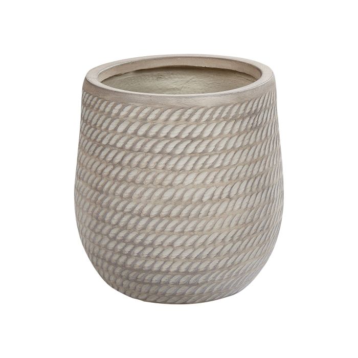 A round plant pot that effortlessly merges aesthetics with functionality. Crafted from durable fibre clay, this pot showcases an intricate embossed pattern that adds a touch of elegance to any space. Its subtly washed finish imbues it with a timeless charm, while the pot's robust design ensures it remains resilient against varying temperatures and UV rays. Complete with a pre-drilled hole at the base, this pot provides optimal drainage for your plants, making it a perfect choice for both indoor and outdoor settings. Details: Color: Beige. Main material: Fibre Clay. Weight: 4 Assembly: Does Not Require Assembly