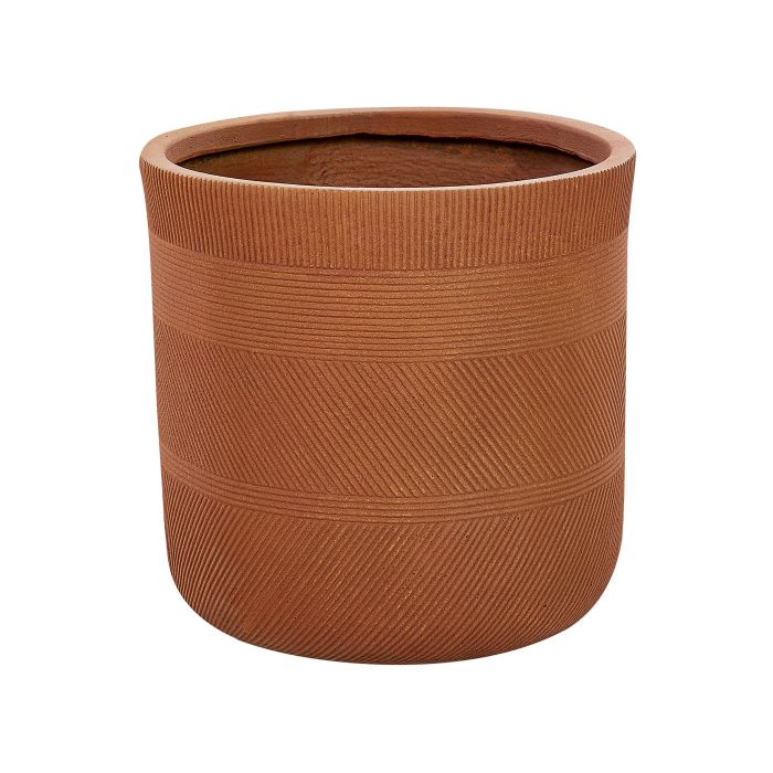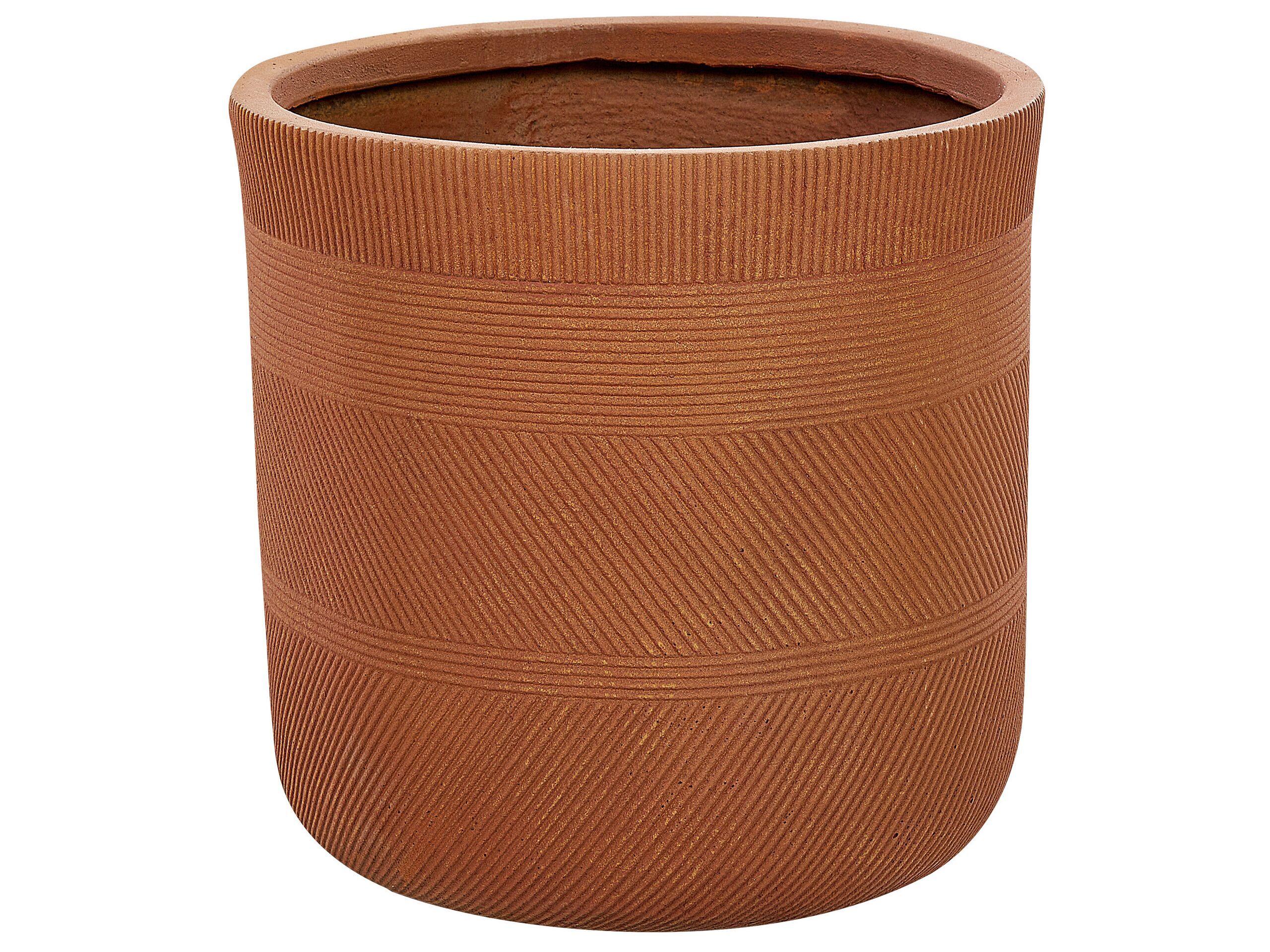 Decorate your garden or home with this beautiful round plant pot. Its surface boasts an embossed striped pattern, adding both texture and visual intrigue to its intense, golden brown tone. Crafted from resilient fibre clay, this pot not only adds a rustic charm to your space but also exhibits exceptional durability, remaining unfazed by varying temperatures and UV exposure. Complete with a drilled hole at the bottom, it ensures optimal drainage for your plants while exuding timeless allure. Details: Color: Brown. Main material: Fibre Clay. Weight: 6 Assembly: Does Not Require Assembly