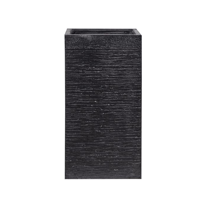 Tall elegant flower pot with a textured surface, perfect for beautifying your garden, balcony or patio with greenery. Made from fibre clay and strengthened with glass fibre it is resistant to temperature change and easy-care. The planter works well as an outdoor or indoor decorative accent, dividing the space and adding a refreshing touch. Details: Color: Black. Main material: Fibre Clay. Additional material: Fibreglass. Weight: 14 Assembly: Does Not Require Assembly Overall Dimensions: 40x40x77