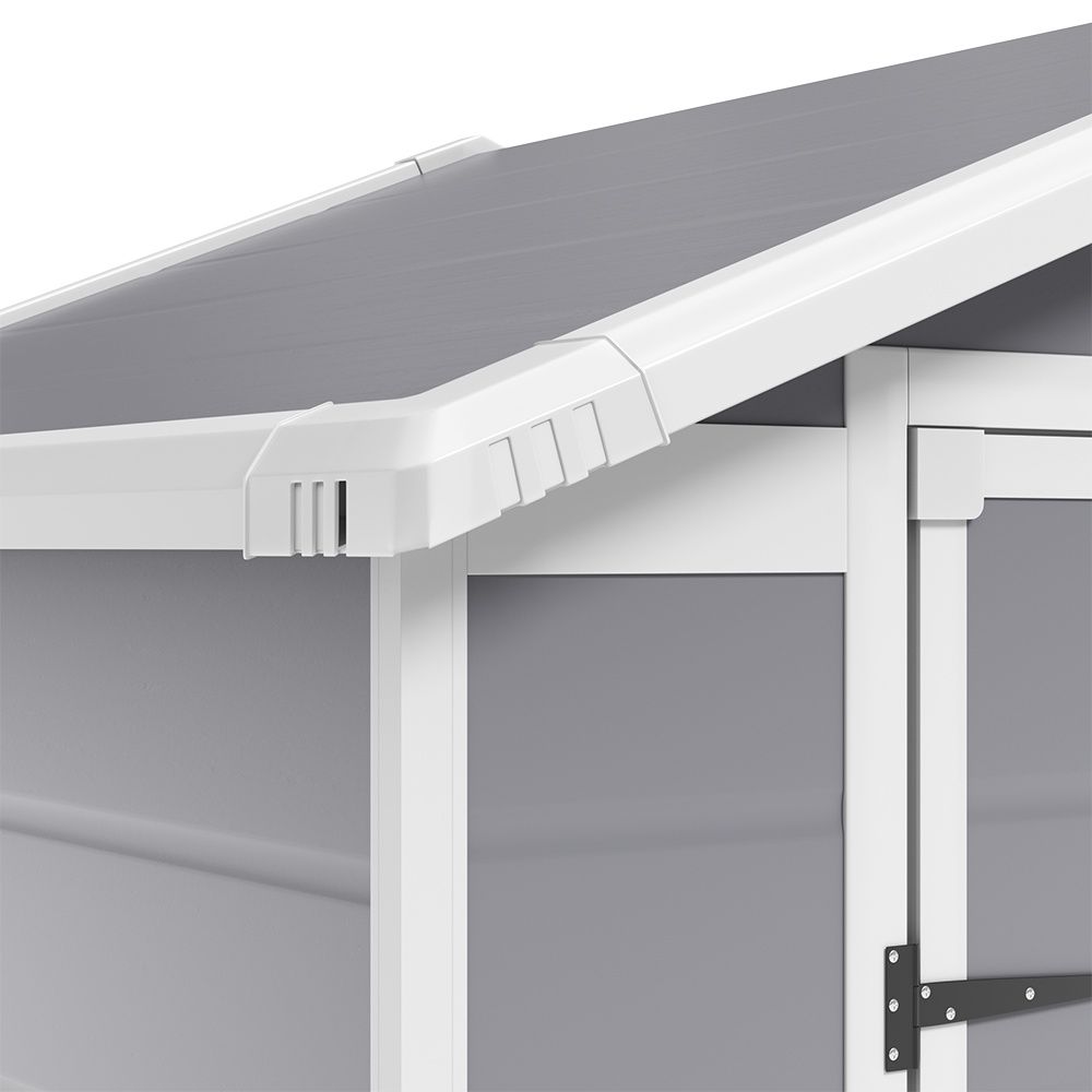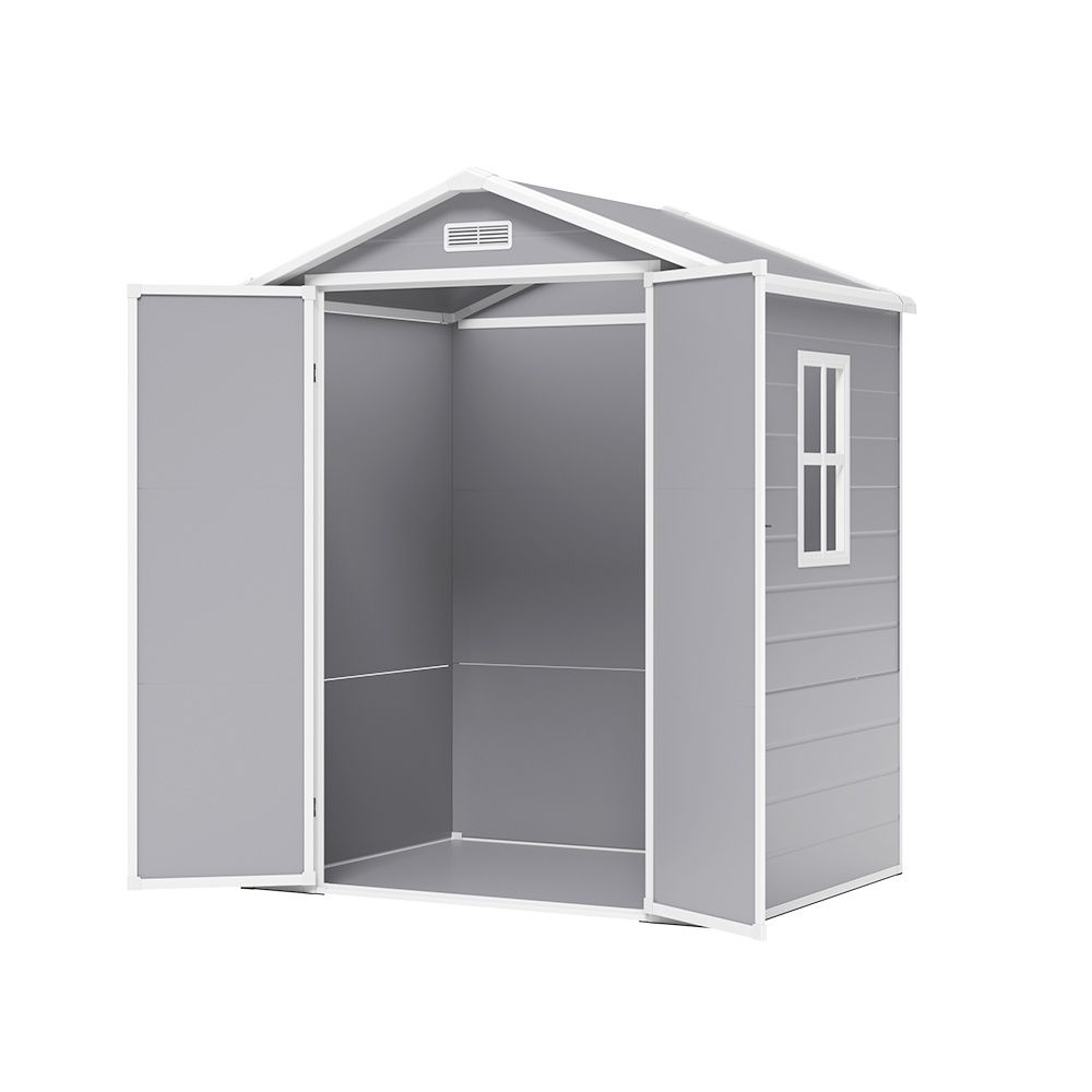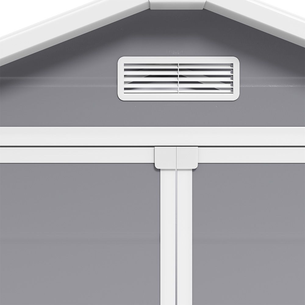 Enjoy hassle-free organization of your garden tools and equipment with this storage shed. The double door grants generous access to the shed, enabling effortless maneuverability and storage of various items. Built with high-quality plastic materials, this shed stands up to rain, sun, and snow. It also features ventilation that keeps your stored items clean and dry, and a fixed window for lots of natural light.