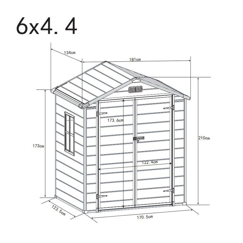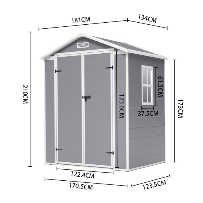 Overall Dimensions: 181cm W x 134cm D x 210cm H Door Dimensions: 122.4cm W x 173.6cm H Window Dimensions: 37.5cm W x 61.5cm H