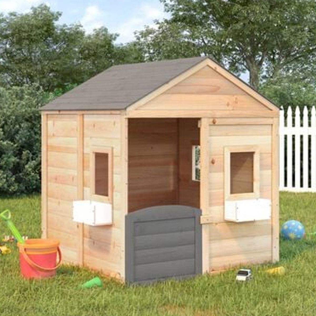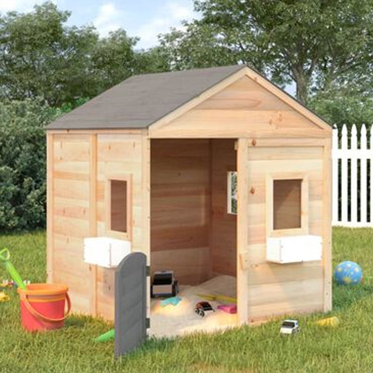 With this wooden playhouse, you can turn your backyard into a fascinating playground for your little ones! Stable material: Solid fir wood is a beautiful natural material. Fir wood doesn't dry out or warp when exposed to moisture.Opening windows and door: This outdoor playhouse has open windows and a lockable door to let in natural light. Your children can bring their toys and knick-knacks and enjoy their leisure time in or around this garden house!Practical flower pots: There are 2 flower pots under the window, which are perfect decorations and offer children a chance to watch as new life emerges.Multiple functions: The kid playground provides hours of fun, encouraging little ones to develop imagination, creativity, role-playing, self-expression, and social development.