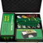 This poker chip set is a great way to get the casino feel at home with your friends and family. Professional poker set: This set includes 5 dice, 1 card shoe, 2 decks of cards, 3 chip holders, 1 automatic card shuffler, 1 play mat, 1 dealer button, 1 small blind button, 1 big blind button, and 300 laser chips.Vivid chips: All the chips are in classic casino colours. Each chip weighs 11,5 g to give an authentic and premium feel.Portable carry case: The poker set comes with a stylish aluminium carry case that keeps everything together and organised. The case is lightweight and portable which makes it easy to store away when not in use and ideal to be taken from one venue to the next.