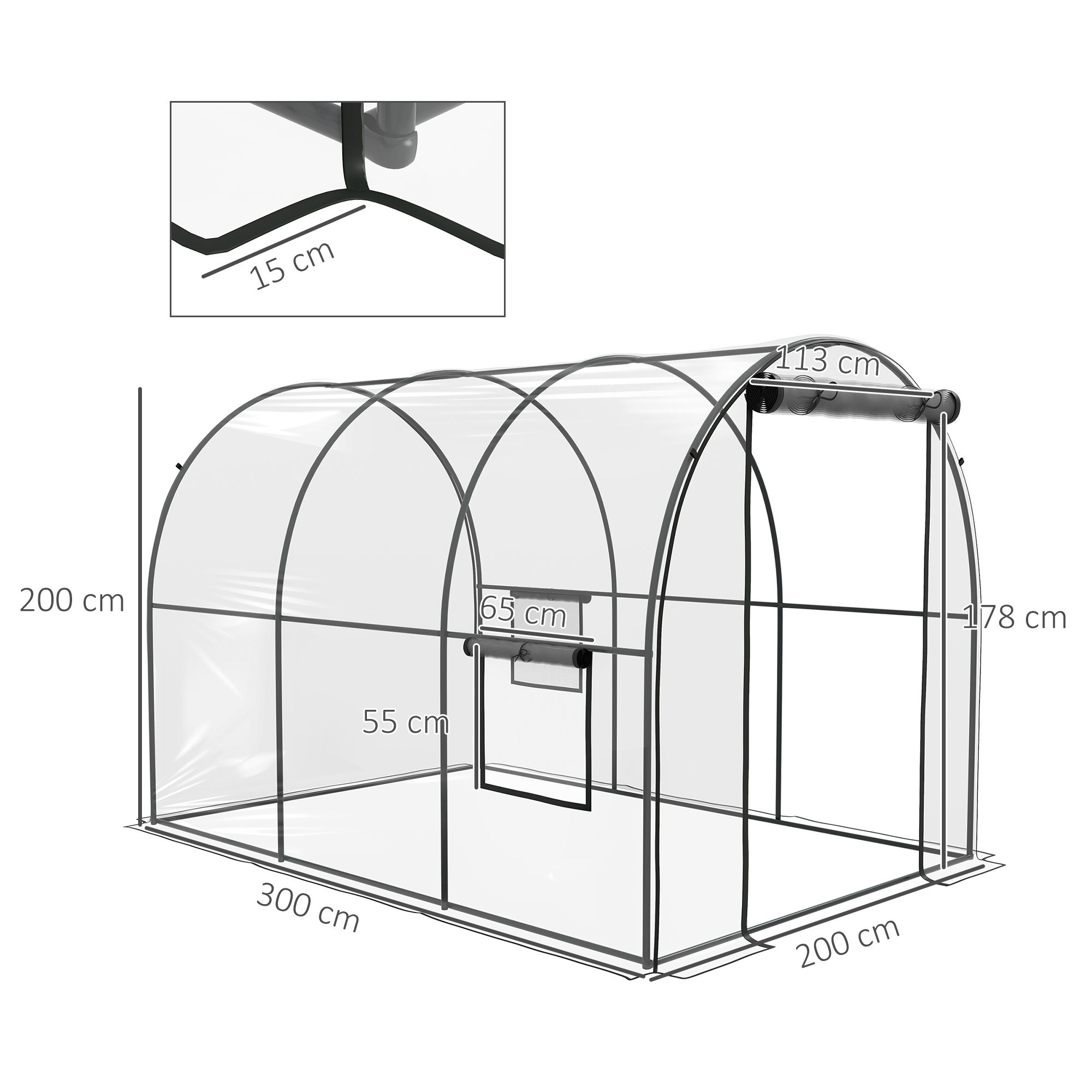 Polytunnel Greenhouse Walk-in Grow House with Plasric Cover, Door, Mesh Window and Steel Frame, 3 x 2 x 2m, Clear