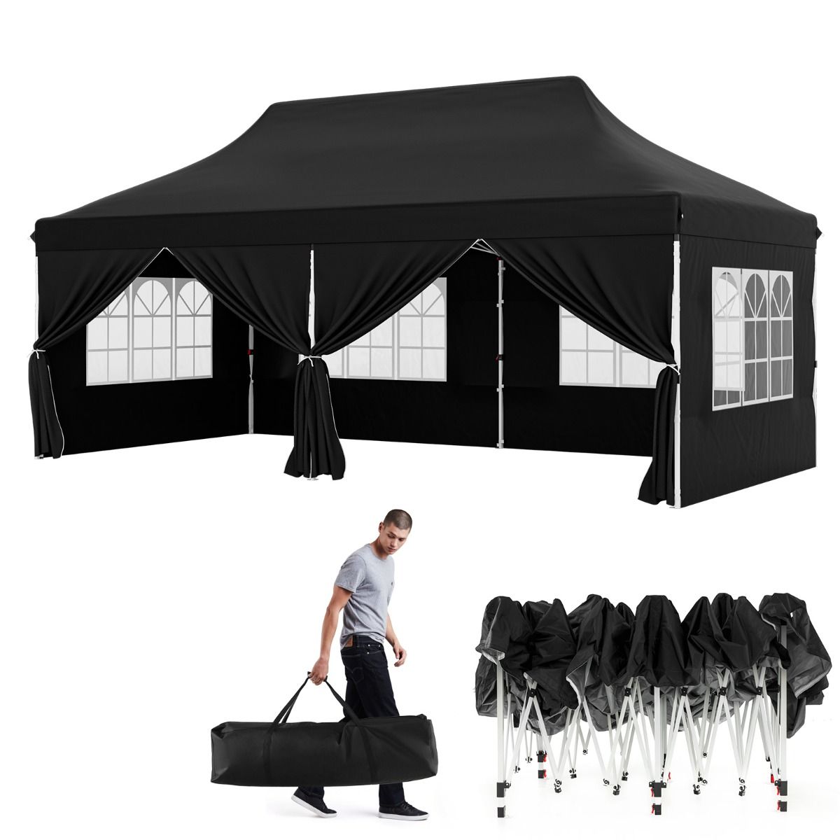 Pop-up Canopy Tent with 6 Detachable Sidewalls and Carrying Bag-Black
