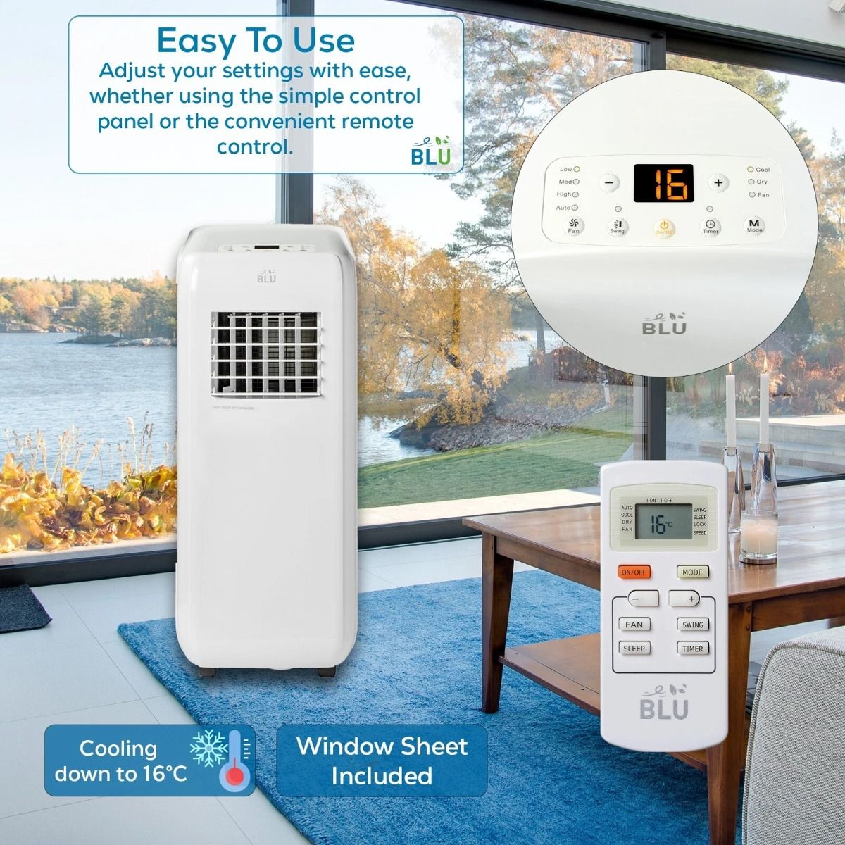 This energy efficient A rated model is packed full of useful features and is essentially a 3 in 1 unit - Air Conditioner, Dehumidifier and Fan. Weighing at 26.5kg this model features castor wheels to help you move it from room to room with ease. This model does not require any permanent installation and the hose kit provided can be used with any UK window. A complimentary window sheet allows you to seal your windows to minimise hot air coming back into your room. A separate window kit for sash/sliding windows can also be purchased. However, please note the BLU09 can be used with the hose kit for any UK window opening.