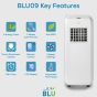 The BLU09 Portable air conditioner offers powerful cooling performance without the noise. It uses the newest refrigerant R290 which is the most environmentally friendly gas and will become industry standard in 2020. It delivers cool air (8,870btu/2.5kW) for rooms up to 20 sqm and features an auto swing function for maximum cooling efficiency.