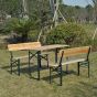 This garden bench and table set is a great item to have in your garden or patio, it can be easily be stored using a simple folding system. The set comes complete with a bench where the backrest folds down and a table. This is ideal for when you have guests around and require extra seating and table.