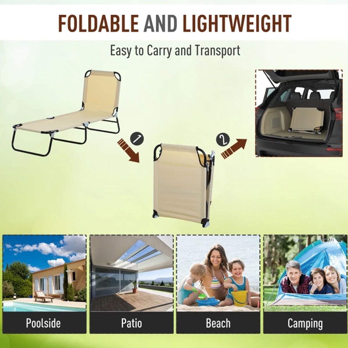 Portable Folding Sun Lounger With 3 Position Adjustable Backrest Recliner - Beige