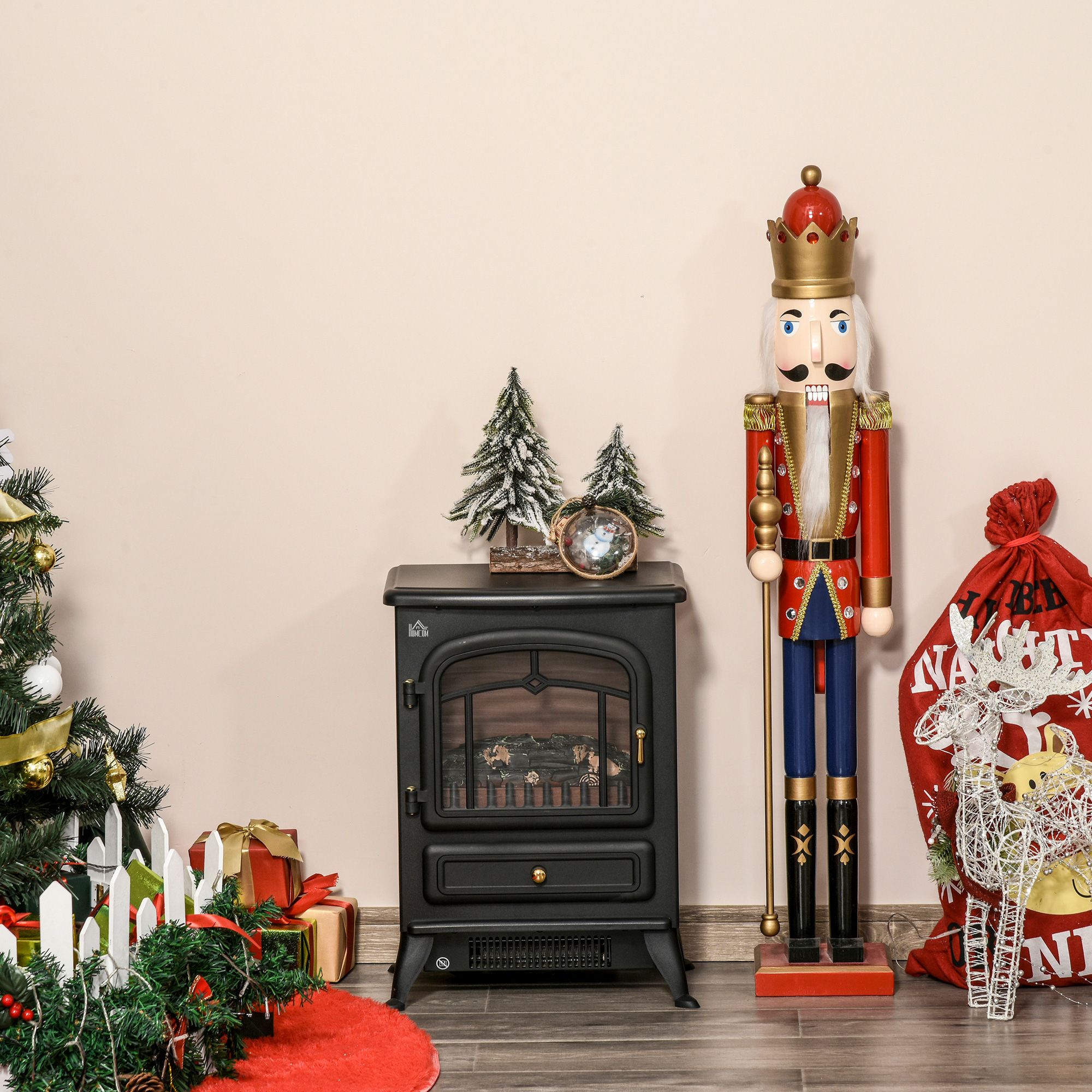 Portable Freestanding Electric Fire Place Indoor Heater Burning Effect Flame 950/1850W - Black