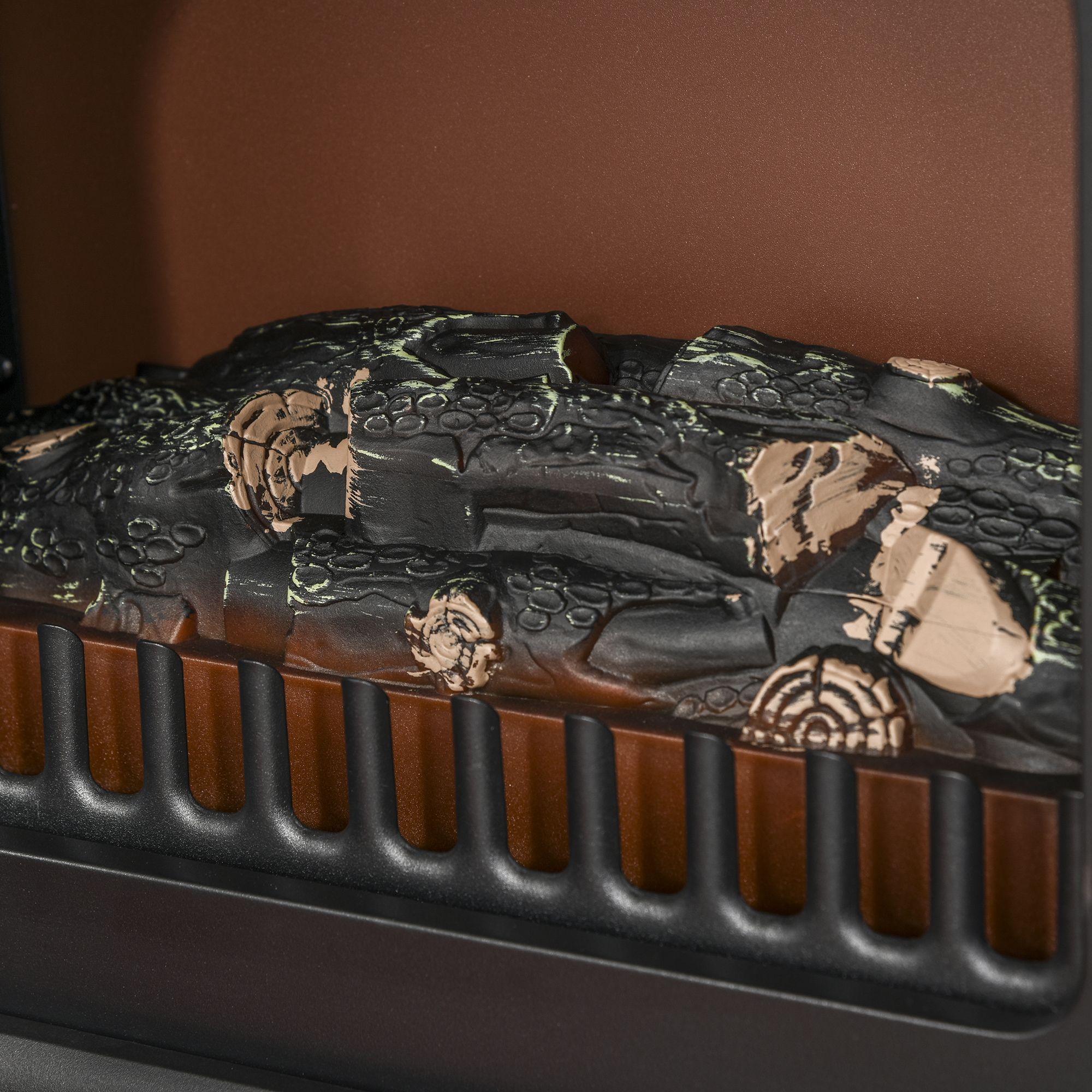 This freestanding fire place is designed with a feel of a real wood burning fireplace. It is made from steel in a compact design with a glass window. The internal temperature of the fireplace can be controlled by the thermostat that ensures it will automatic power off when the product is high temperature.