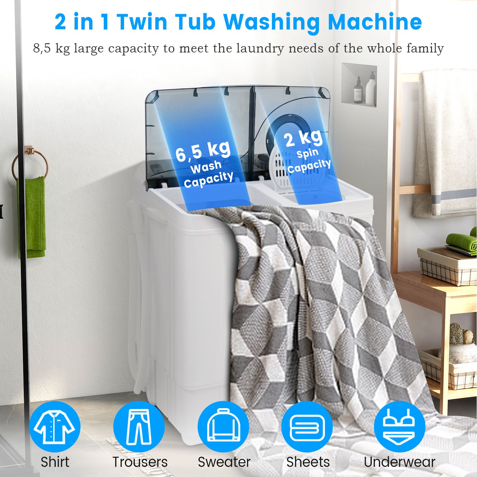 Portable Laundry Washer Spin Dryer with Timing Function and Drain Pump-Black