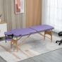 Portable Massage Bed, Folding Spa Beauty Massage Table with 2 Sections, Carry Bag and Wooden Frame, Purple