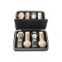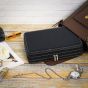 Material: MDF box frame, glass lid, the inner surface of the flannel material, the outer layer of paste leather- Product size : 24.5 x 18 x 5.5 cm- Dimension of each grid: 14 x 3.5 cm